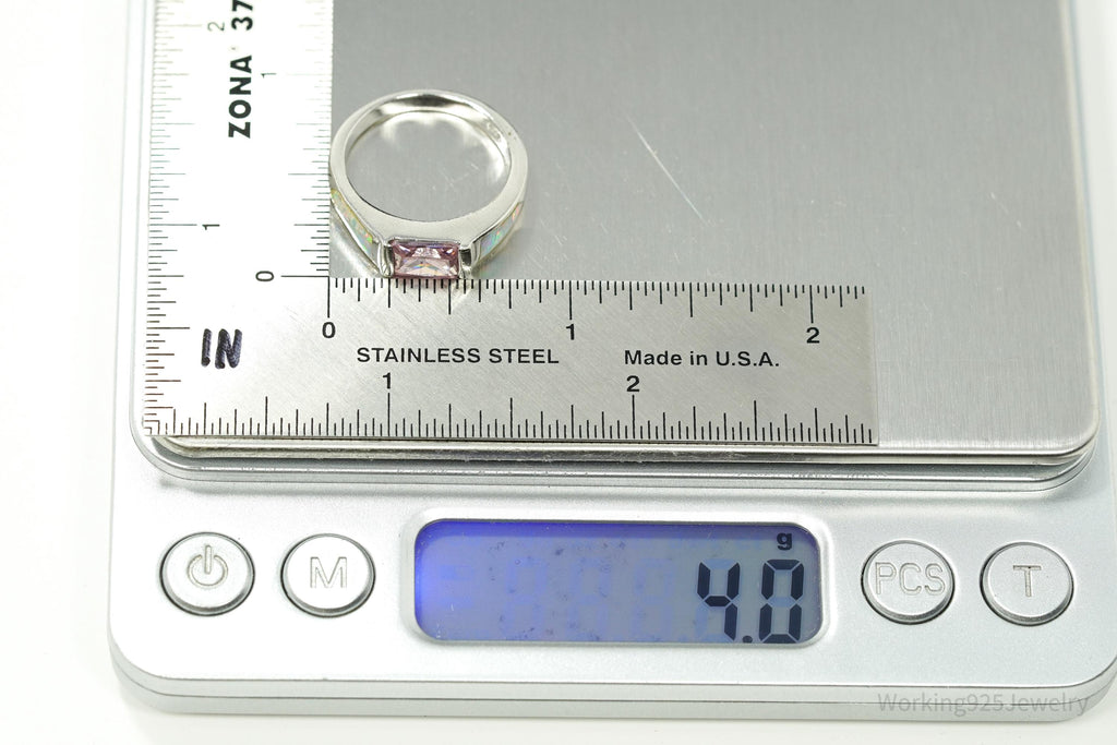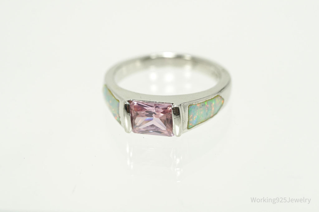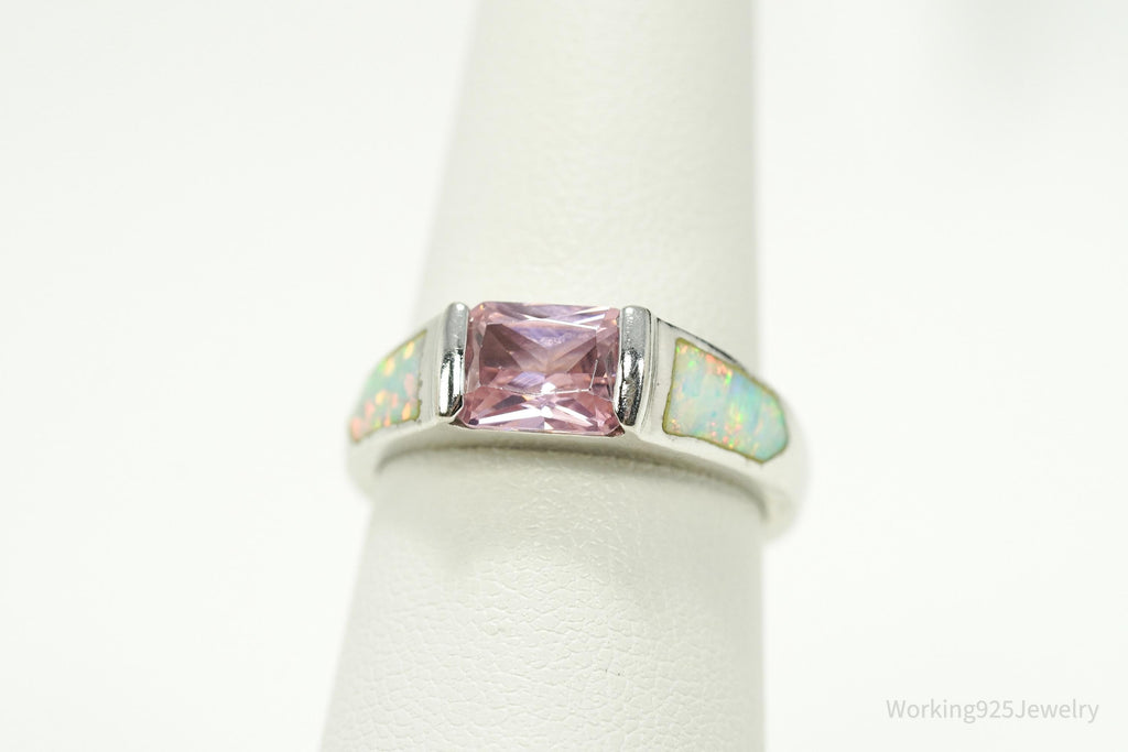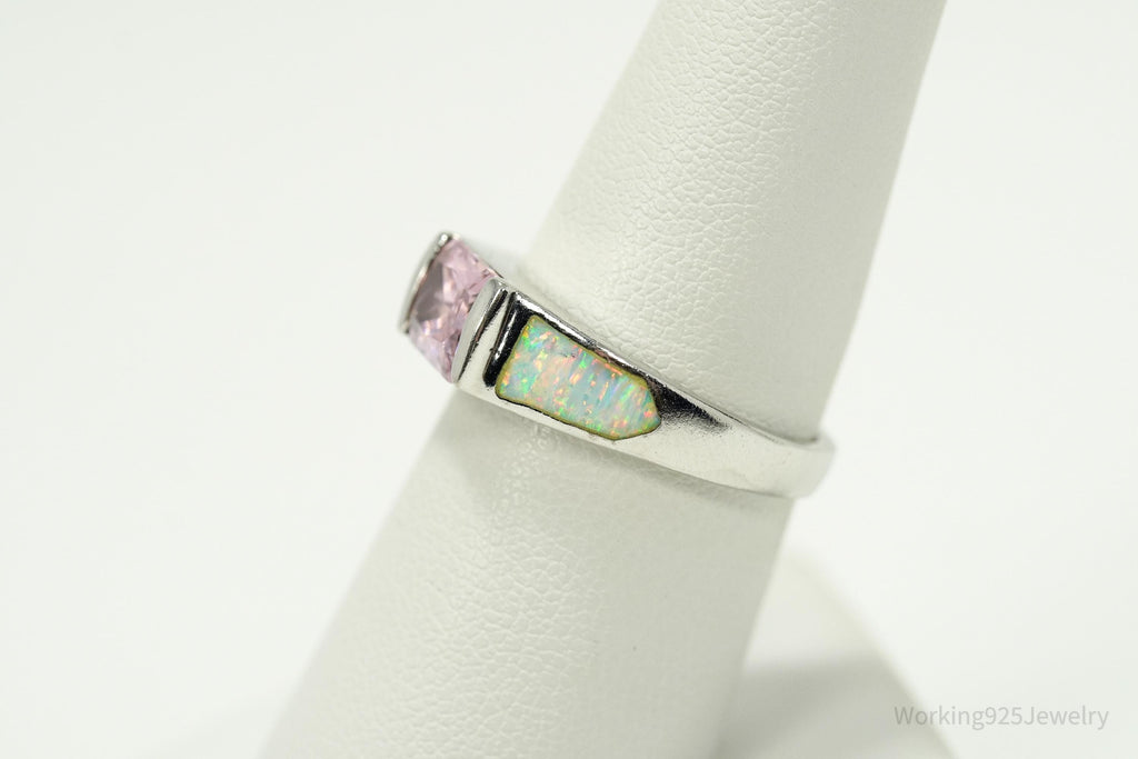 Vintage Opal & Pink Topaz Sterling Silver Ring Size 7
