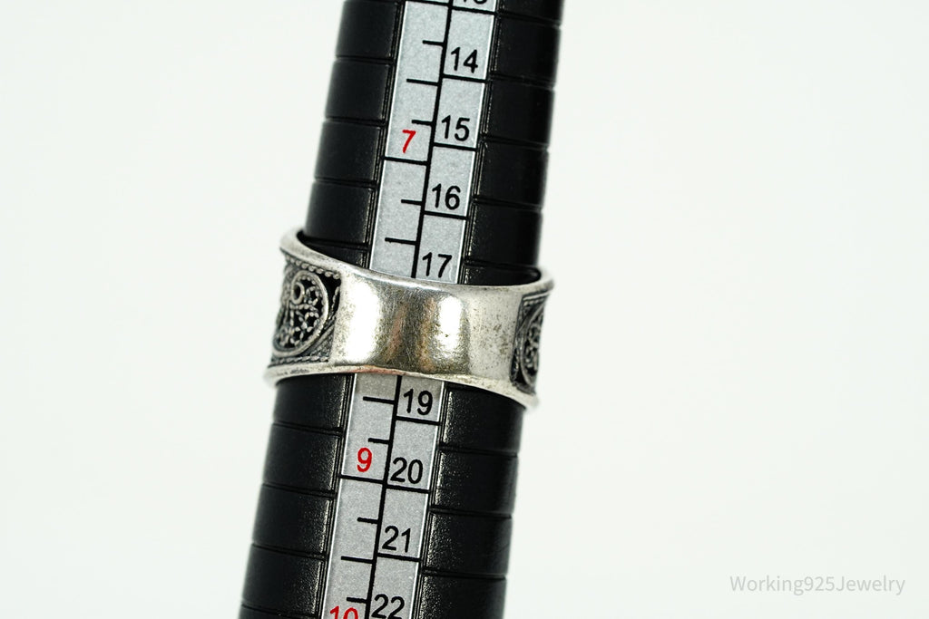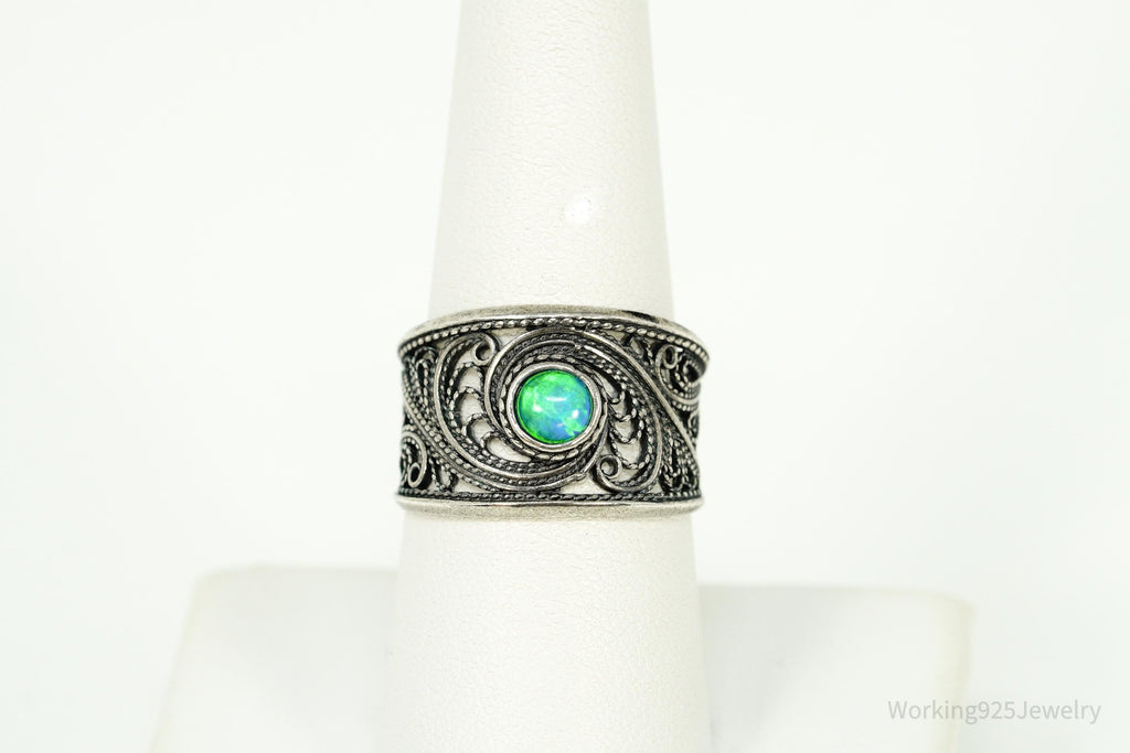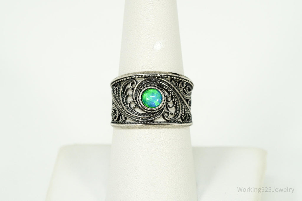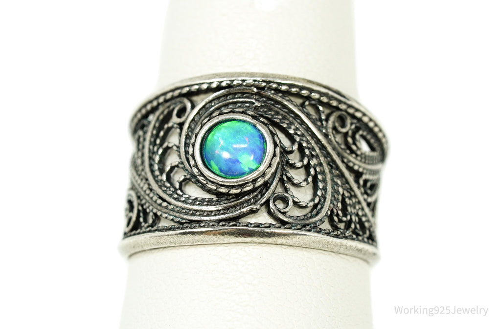 Vintage Opal Sterling Silver Filigree Ring - Size 8.25
