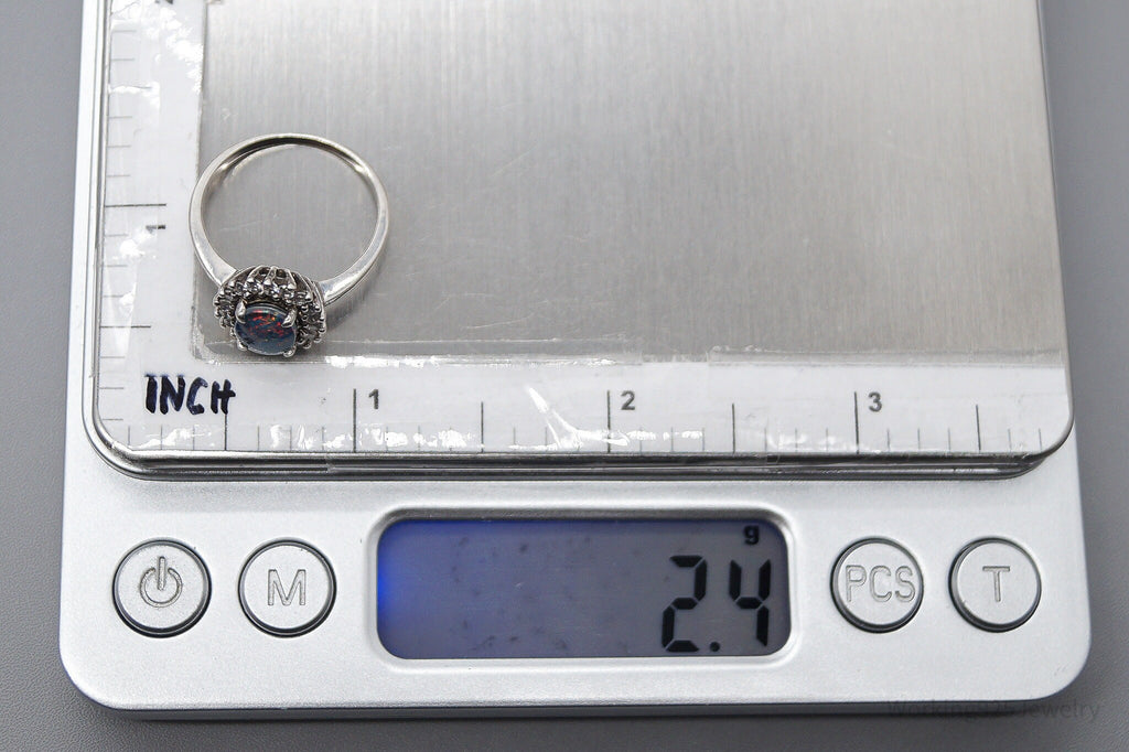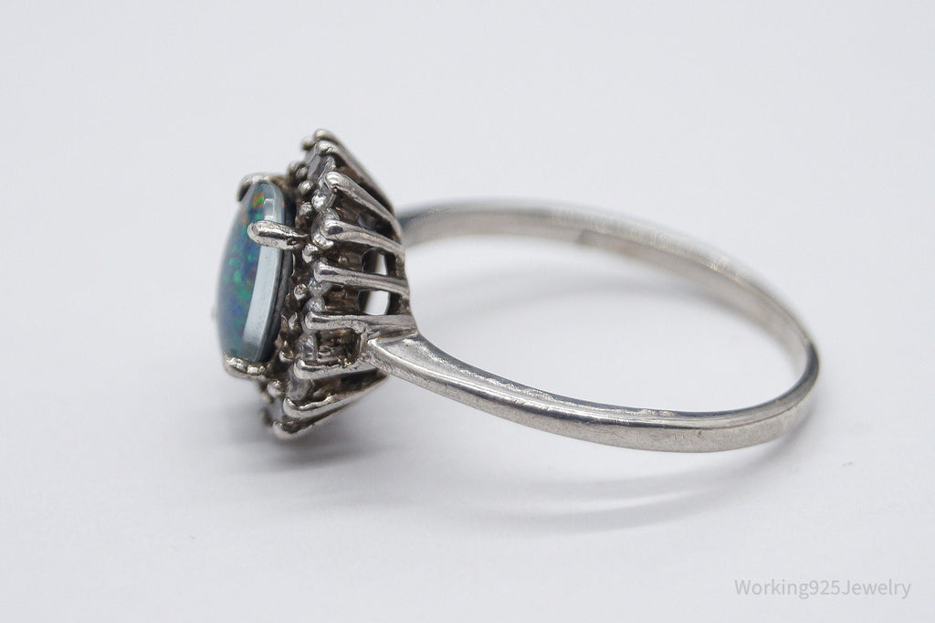 Vintage Opal Triplet Cubic Zirconia Sterling Silver Ring - Size 7