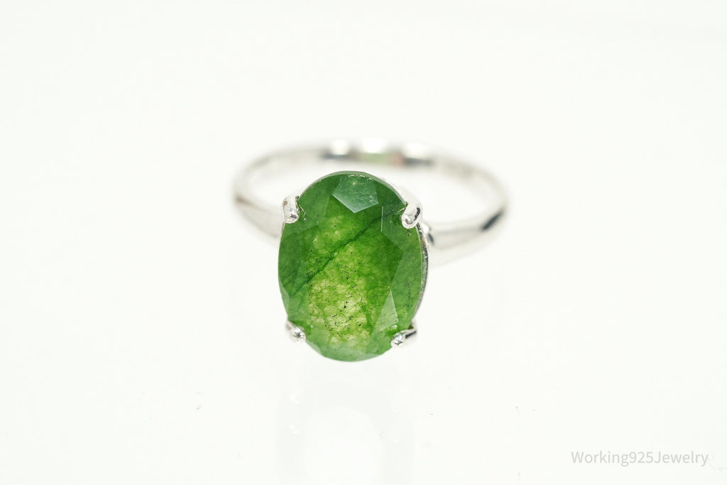 Vintage Emerald Sterling Silver Ring - Size 7.25