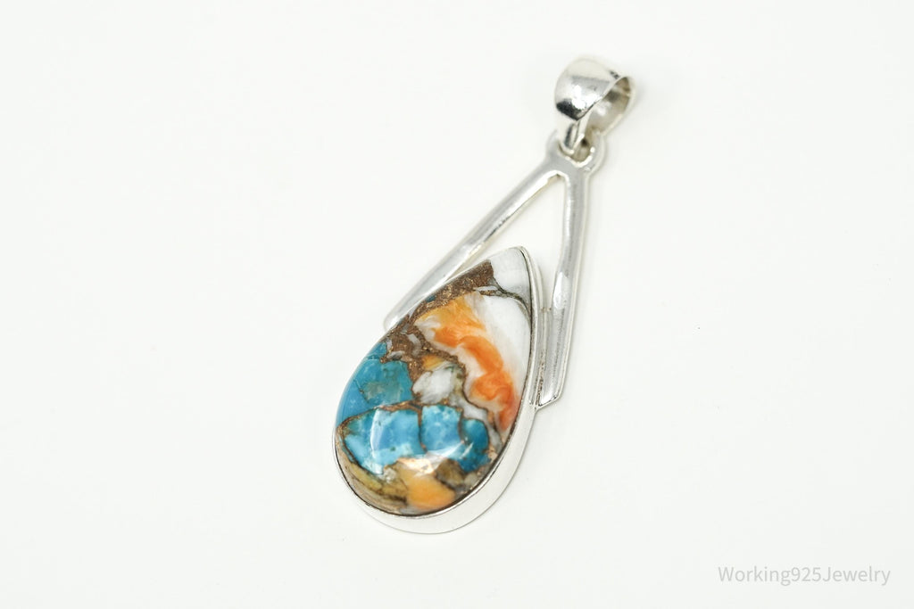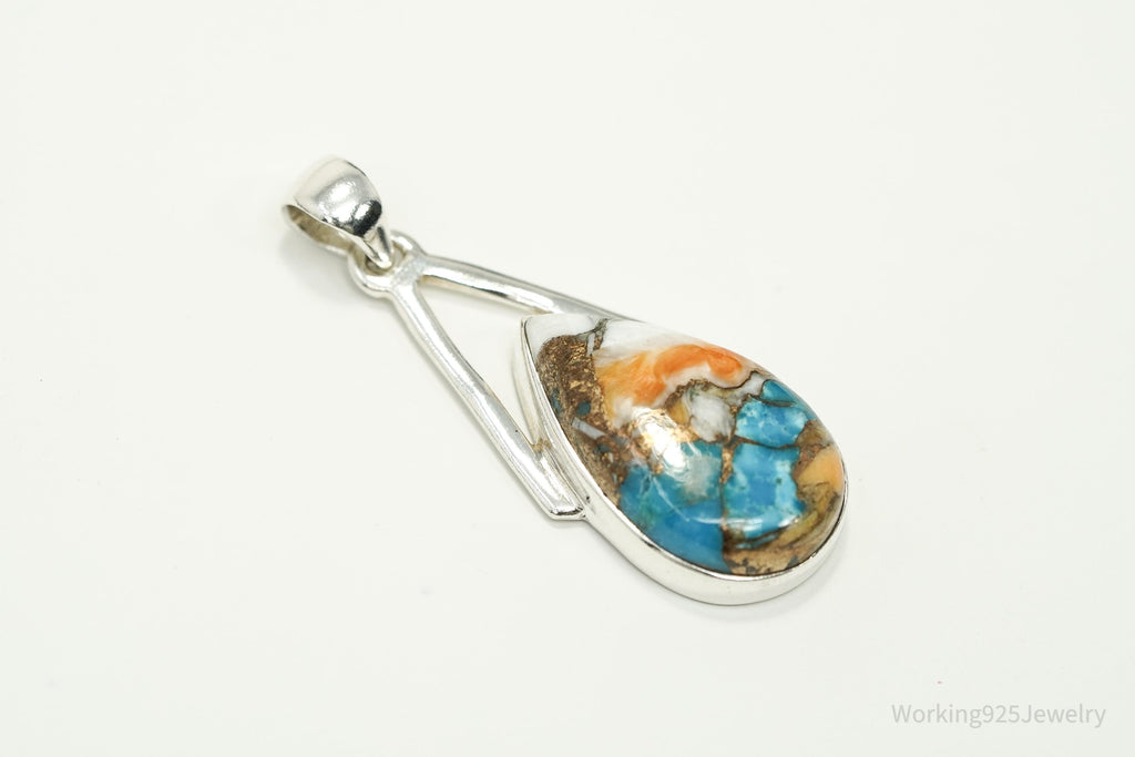 Vintage Oyster Copper Turquoise Sterling Silver Pendant 1 5/8"
