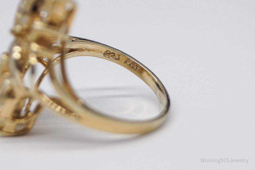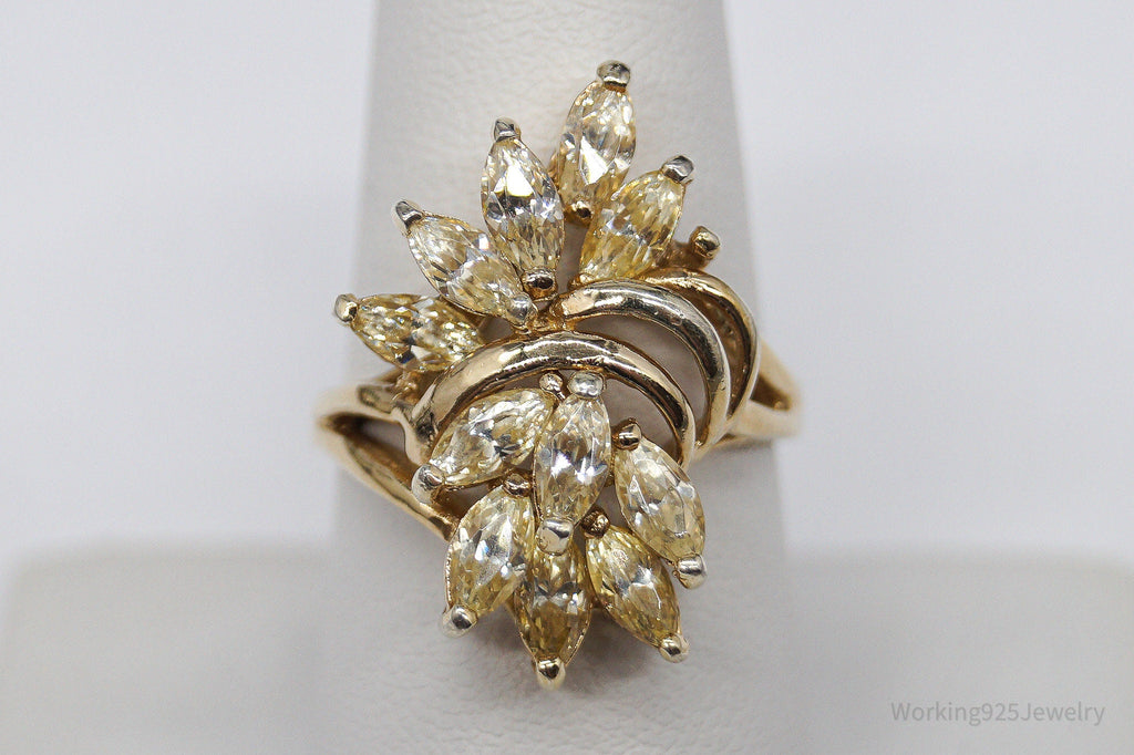 Vintage PAJ Yellow Cubic Zirconia Gold Vermeil Sterling Silver Ring Size 8.25