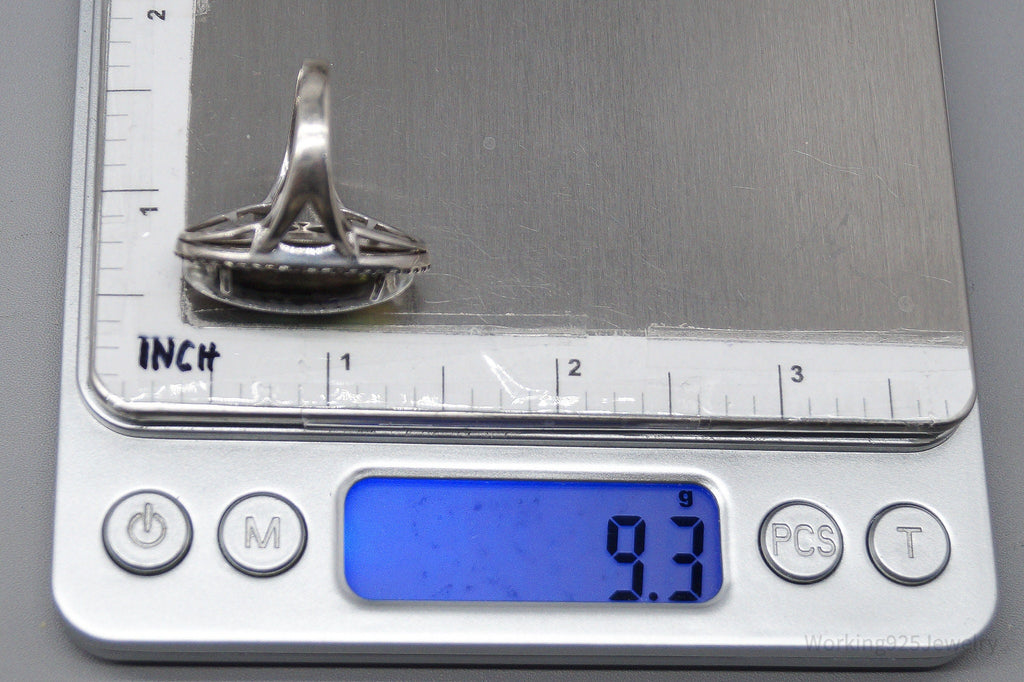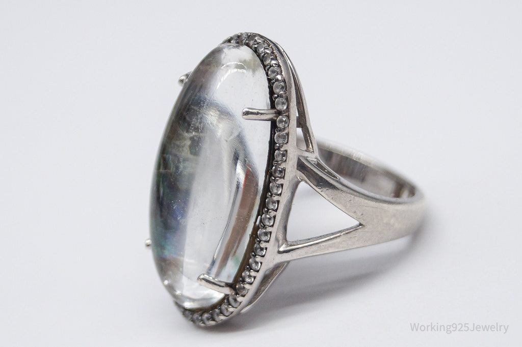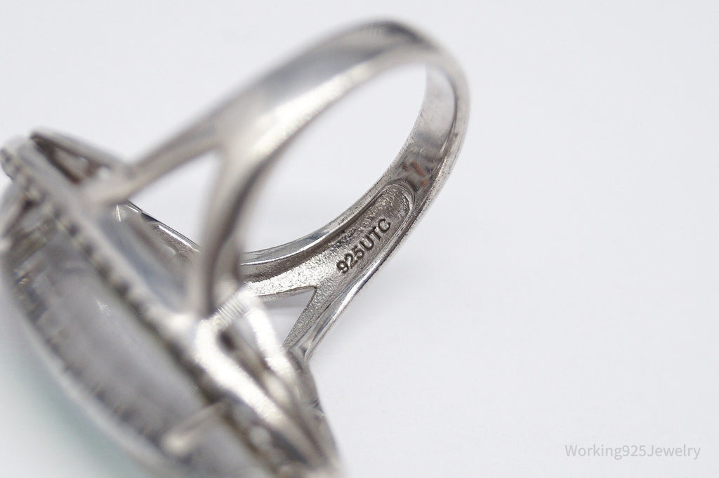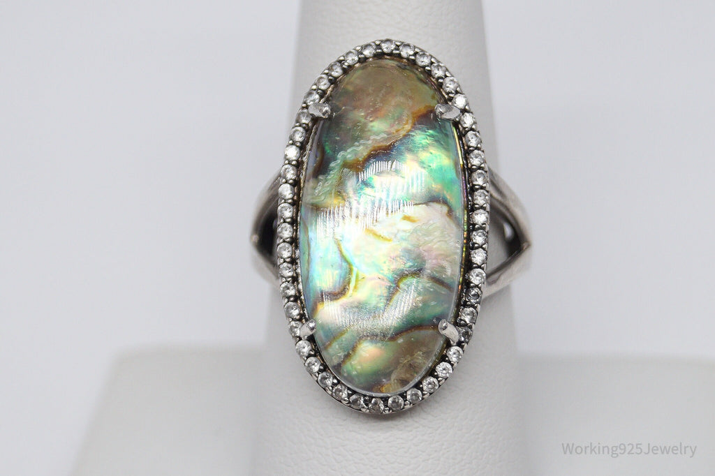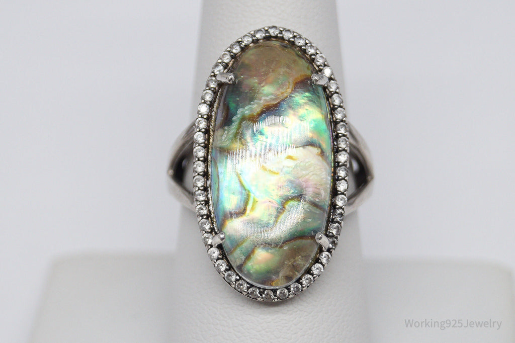 Vintage Paua Abalone Shell White Topaz Sterling Silver Ring - Size 8
