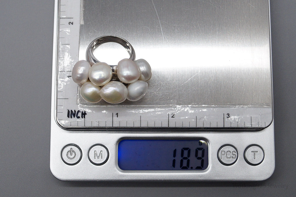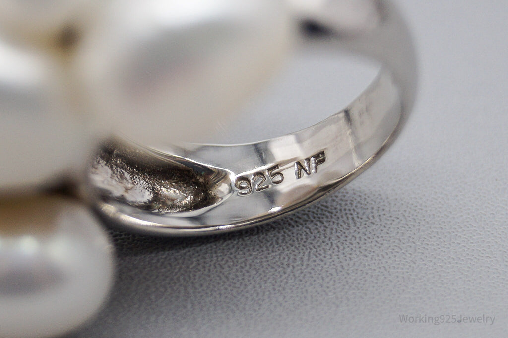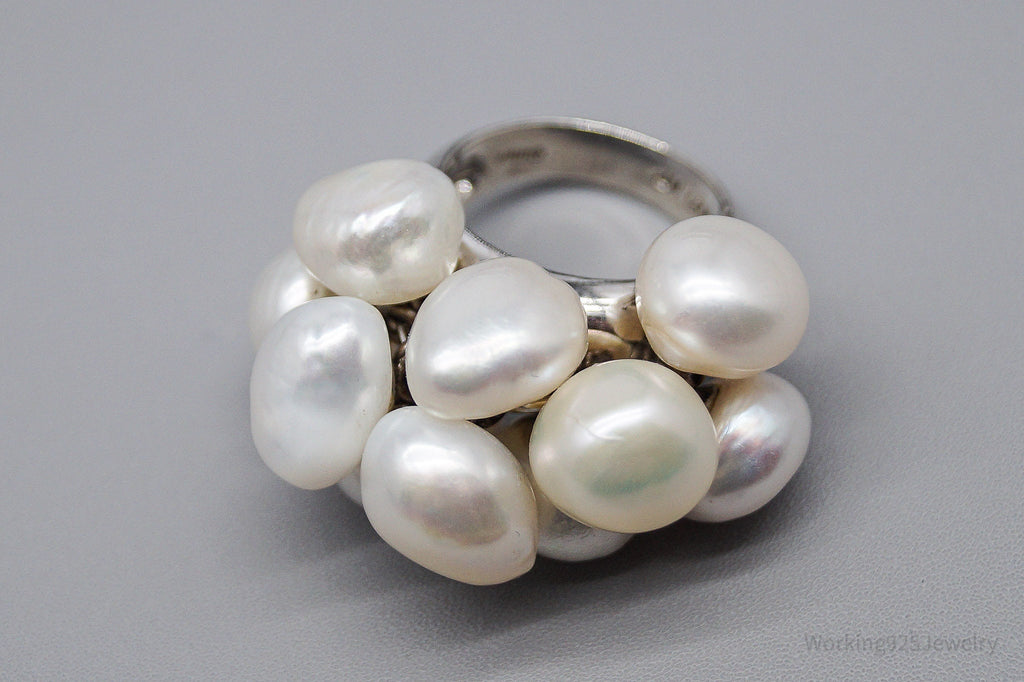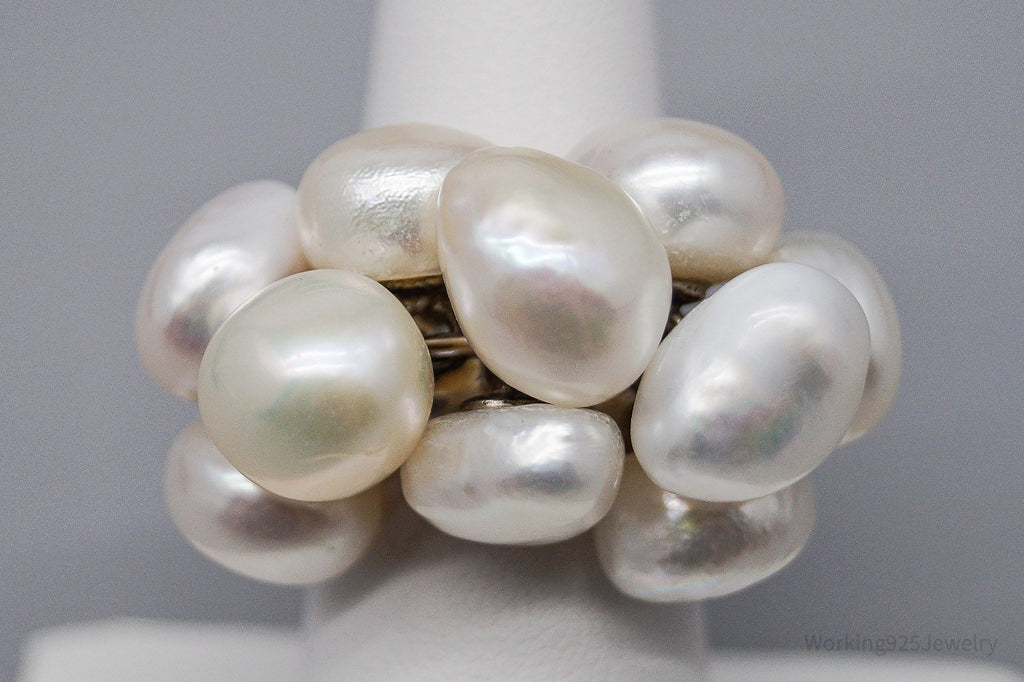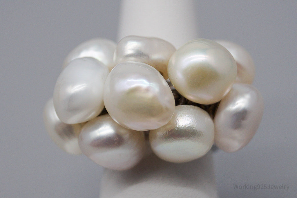 Vintage Pearl Cluster Sterling Silver Ring - Size 7
