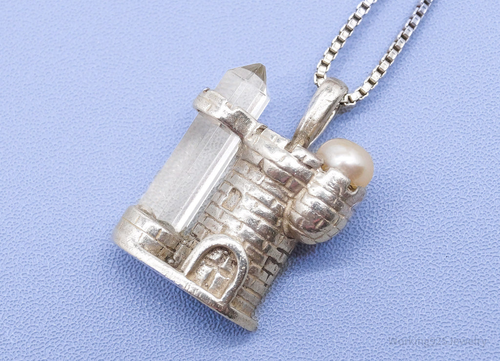 Vintage Pearl & Crystal Castle Sterling Silver Necklace 18"