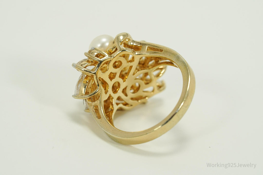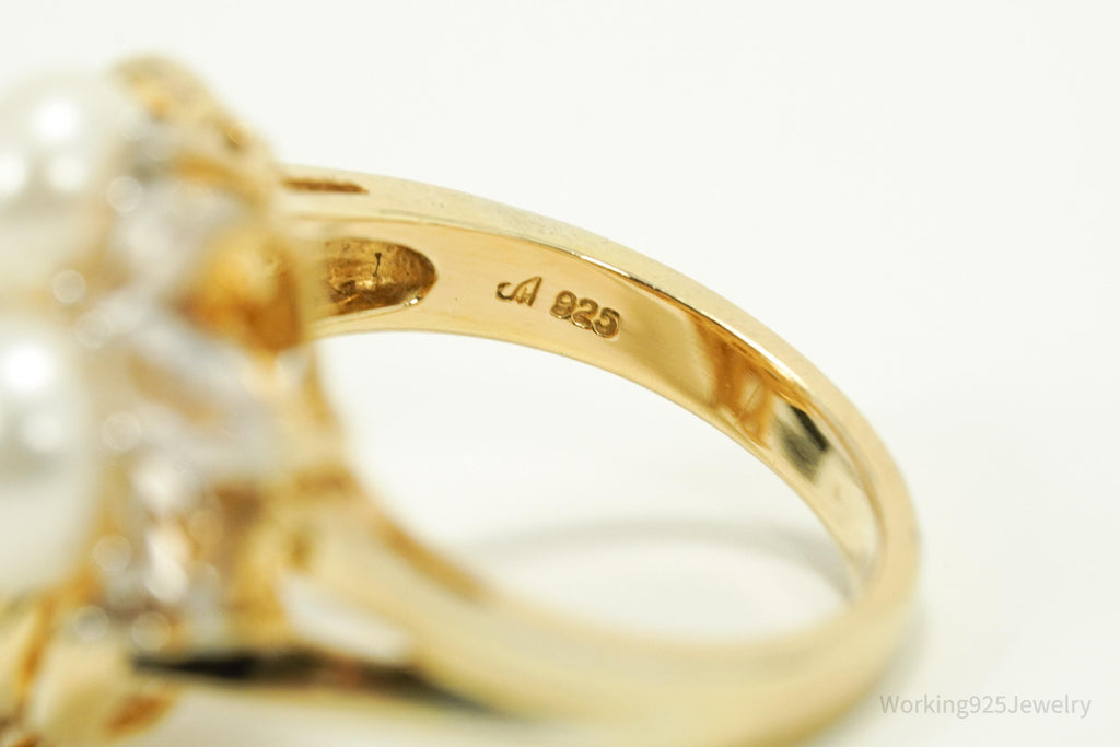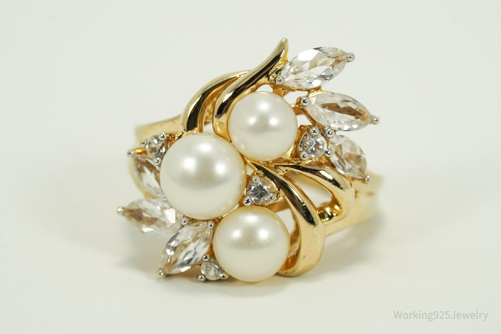 Vintage Pearl & White Sapphire Gold Over Sterling Silver Ring Size 7