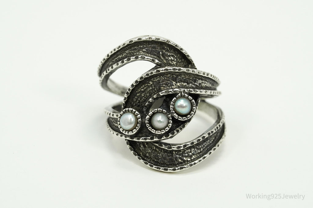 Vintage Pearls Modernist Style Sterling Silver Ring - Size 7.25