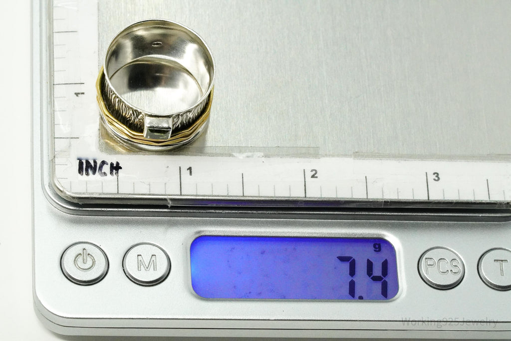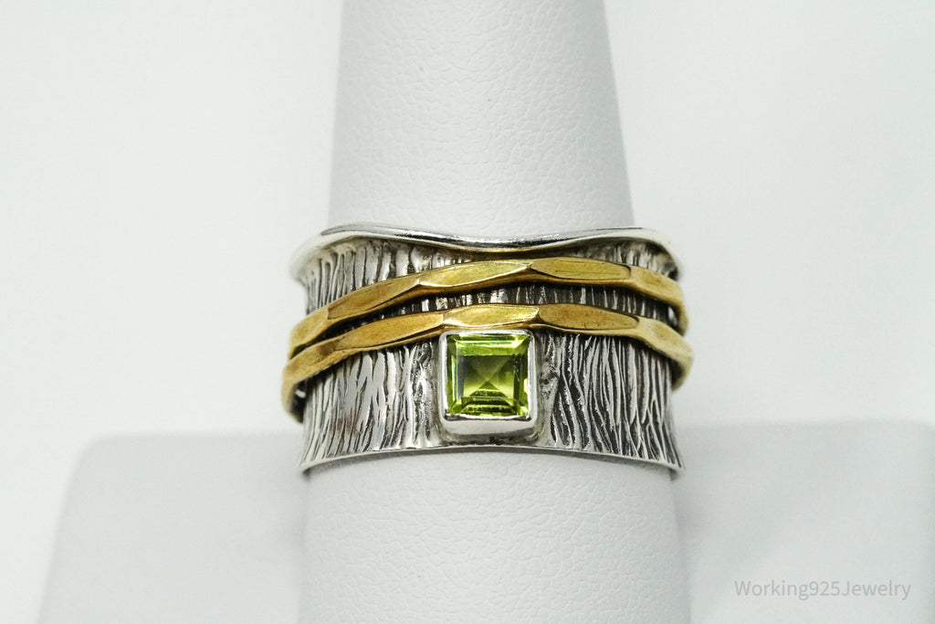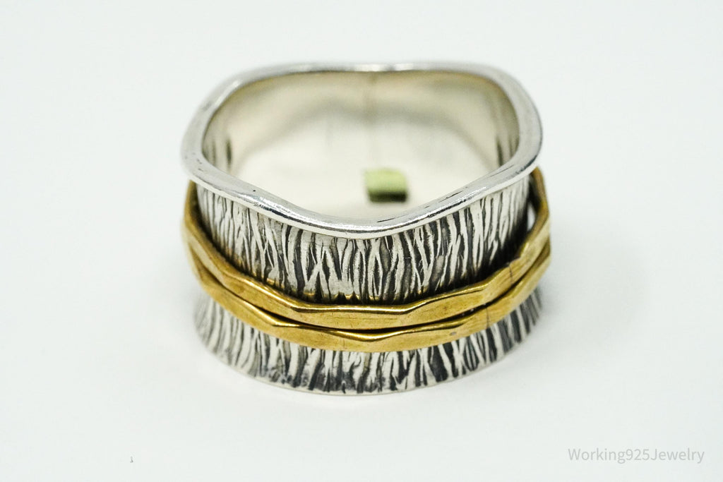 Vintage Peridot Brass Sterling Silver Spinner Band Ring- Size 10.75