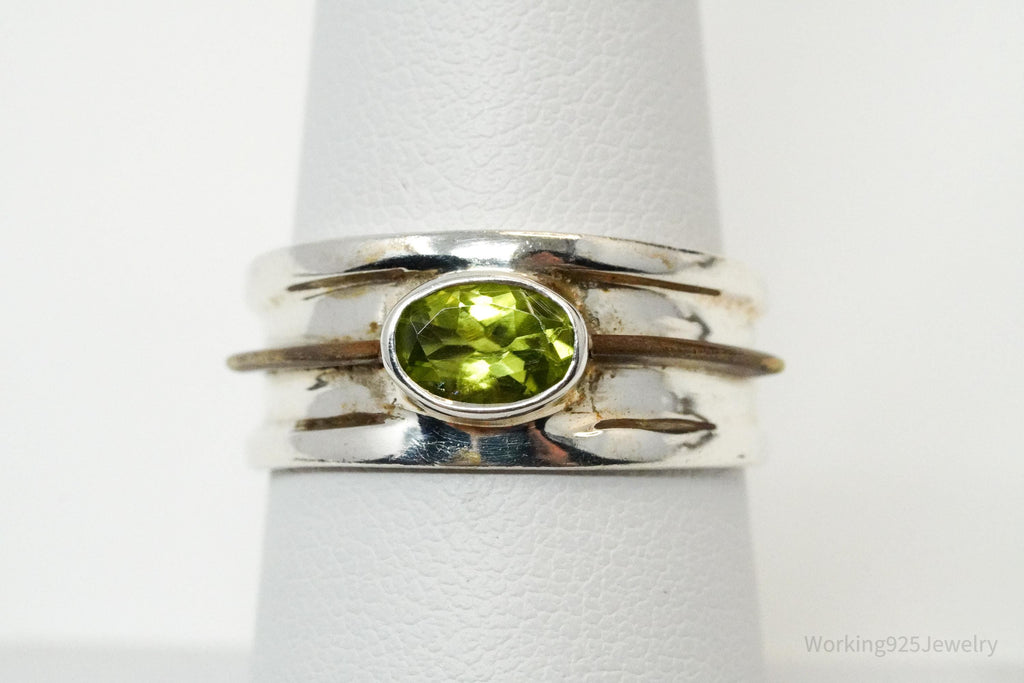 Vintage Peridot & Copper Sterling Silver Ring - Size 7.75