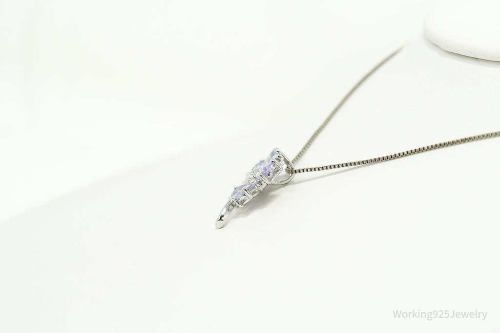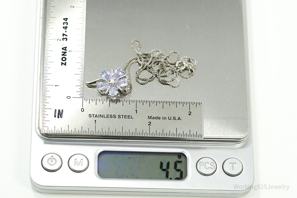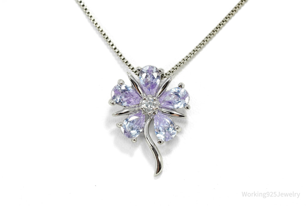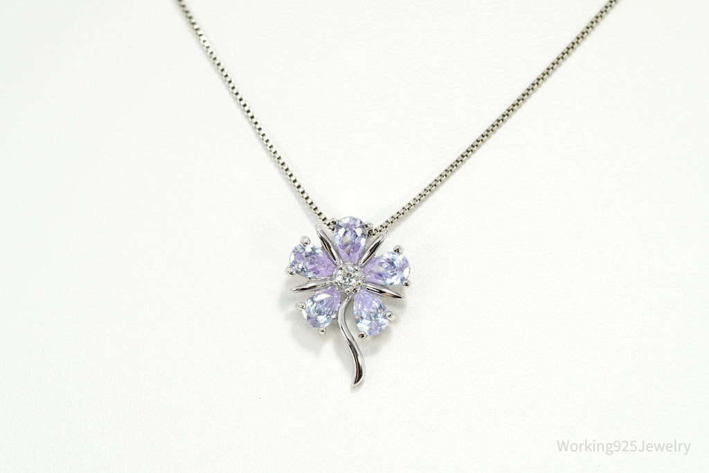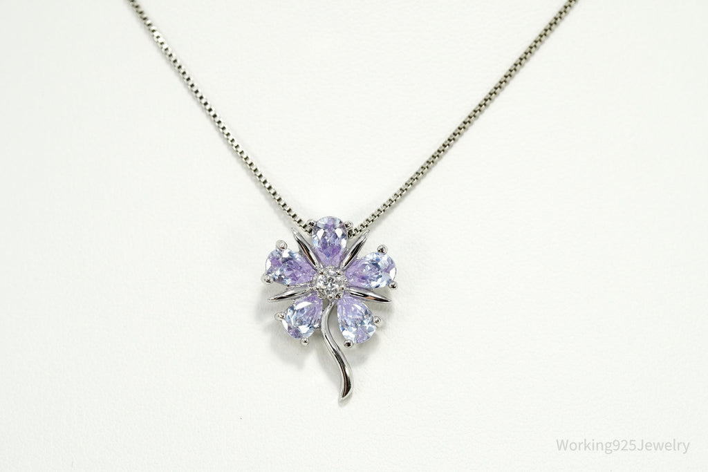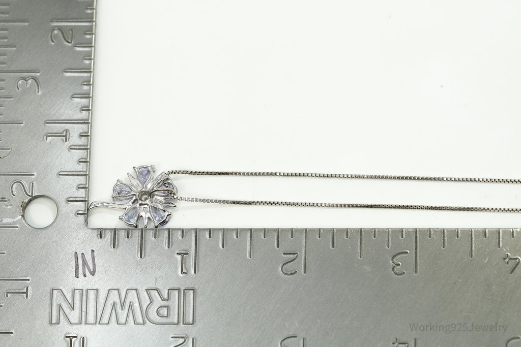 Vintage Periwinkle & White Cubic Zirconia Sterling Silver Flower Necklace - 18"