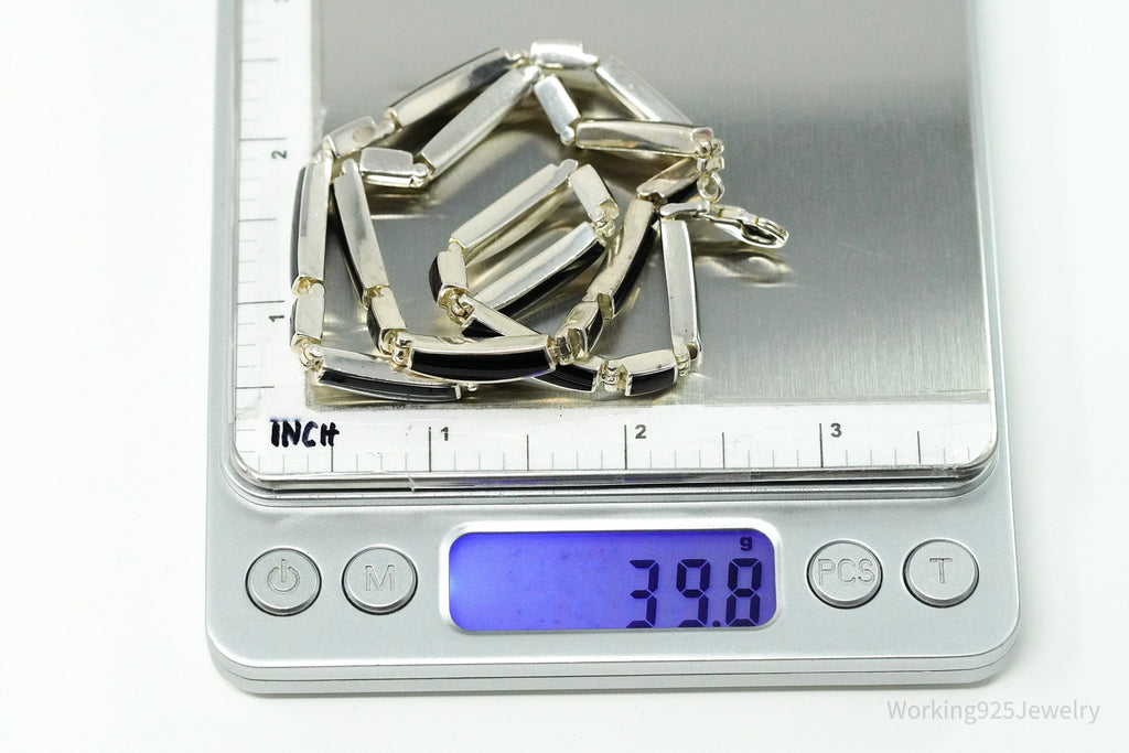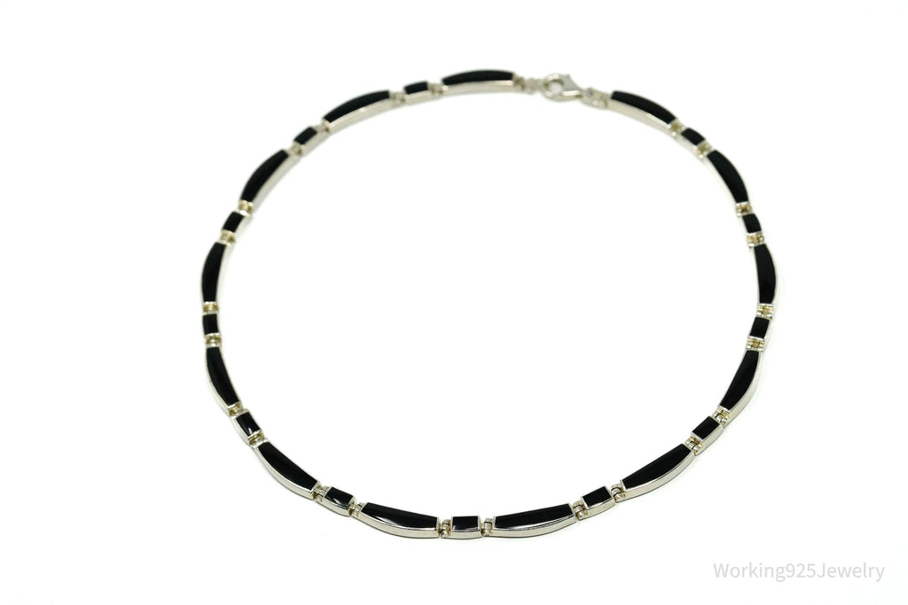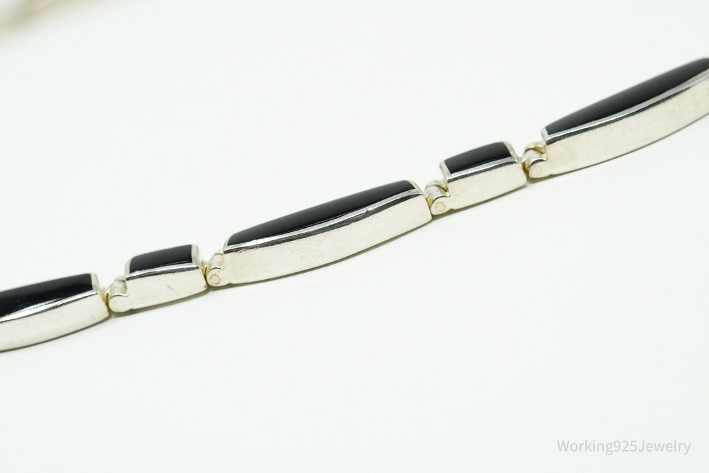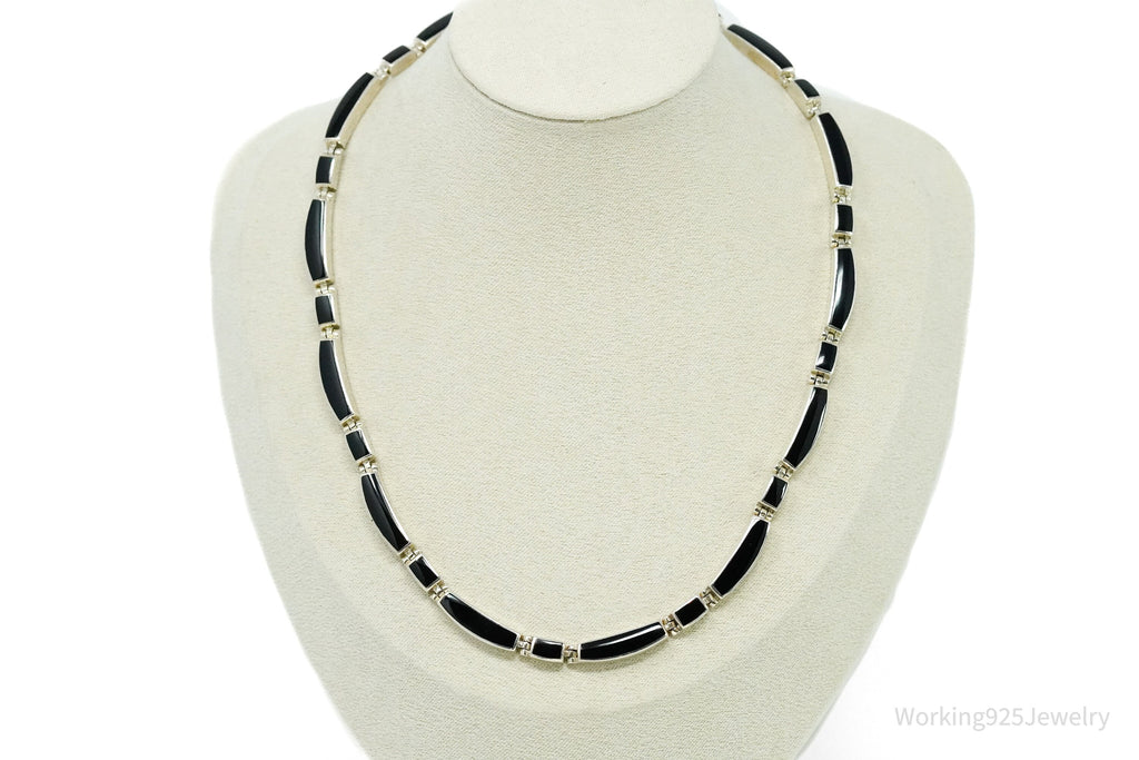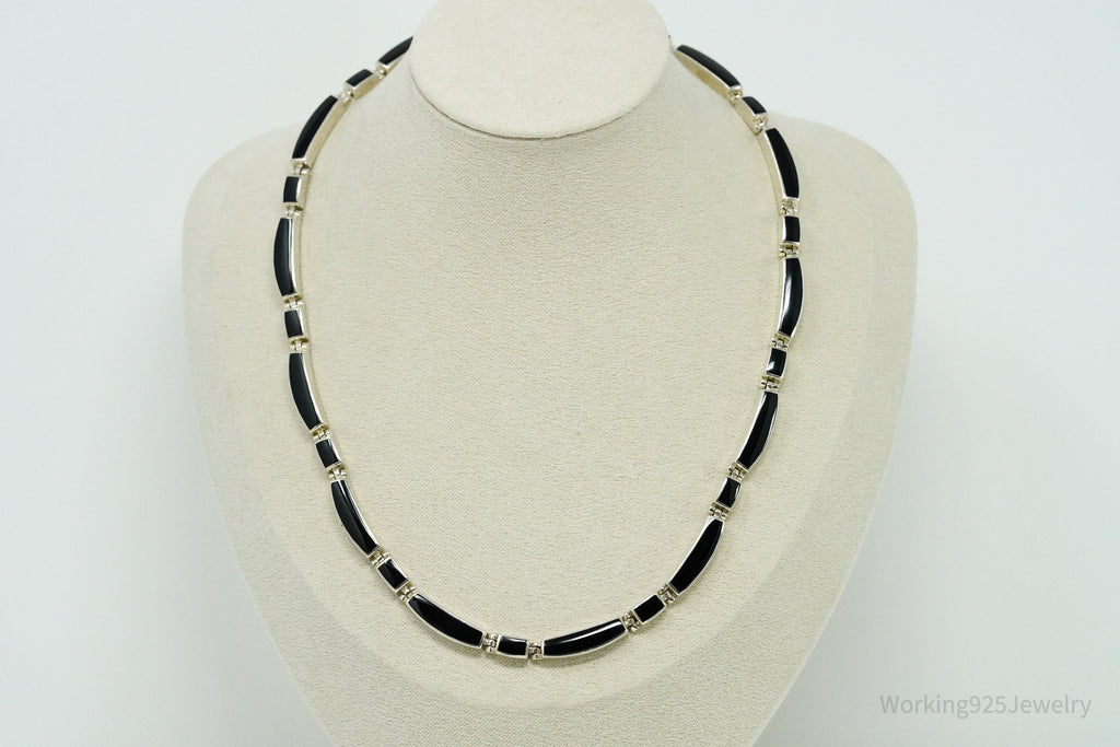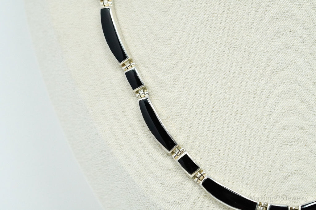 Vintage Peyote Bird Black Onyx Inlay Sterling Silver Necklace 16"