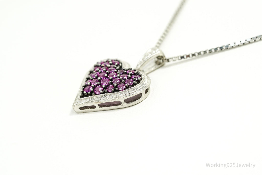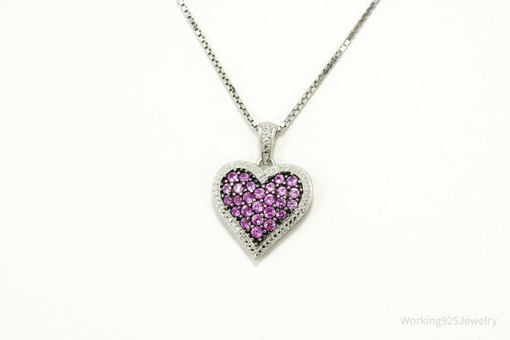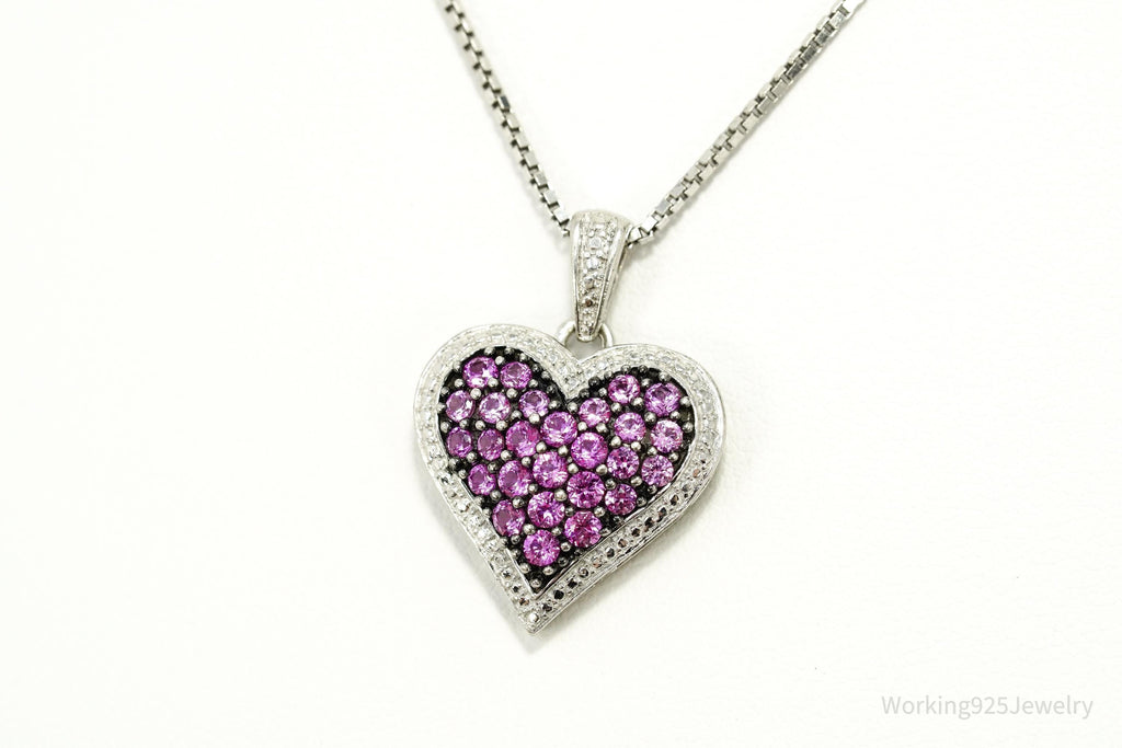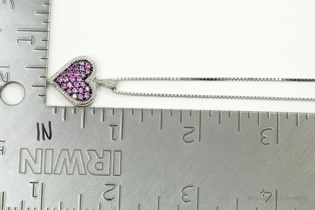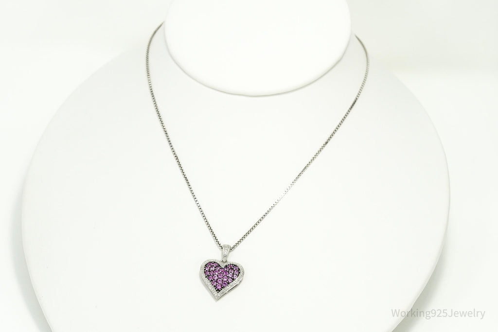 Vintage Pink Sapphire Heart Sterling Silver Necklace 14"