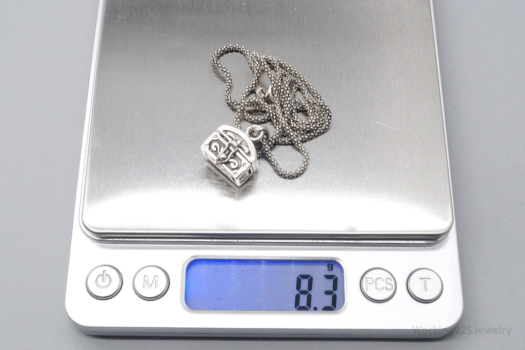 Vintage Prayer Box Sterling Silver Necklace 18"