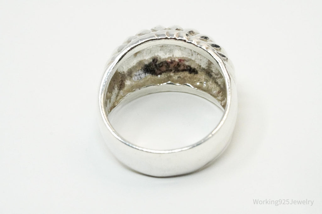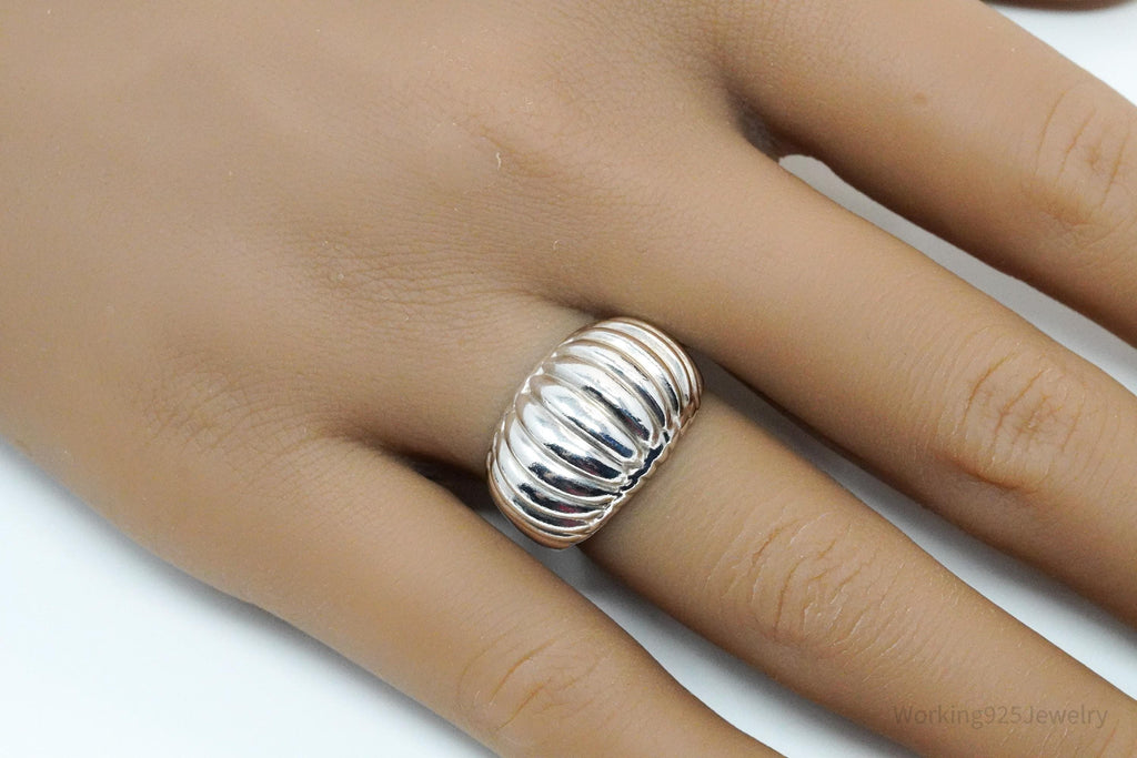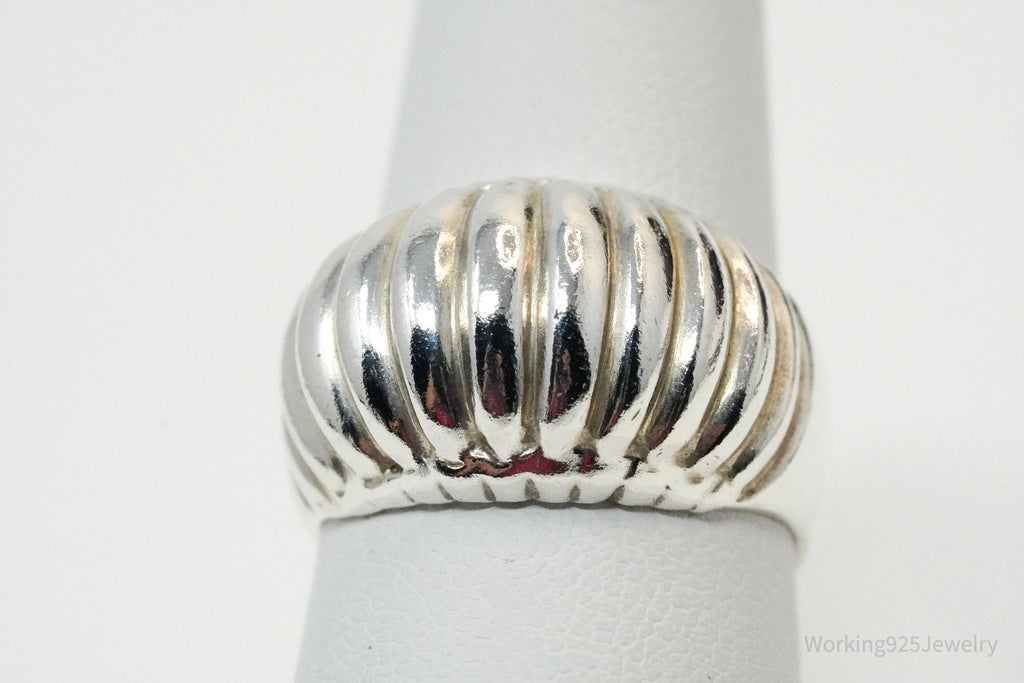 Vintage Puffy Ribbed Style Sterling Silver Ring - Size 7