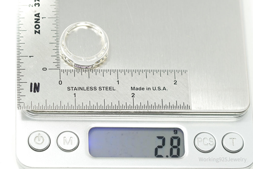 Vintage Purple Amethyst Hearts Pattern Sterling Silver Ring - Size 7