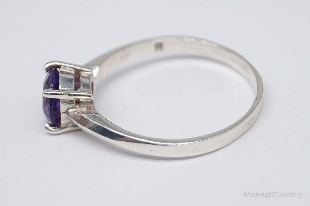 Vintage Purple Amethyst Sterling Silver Ring - Size 9.75