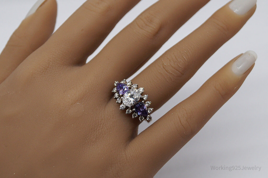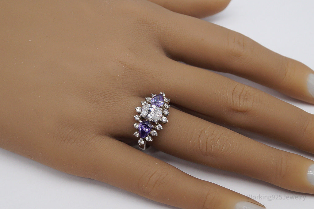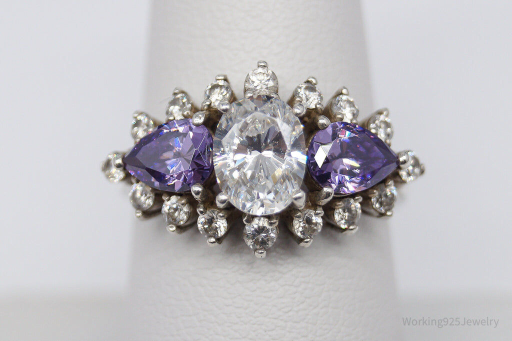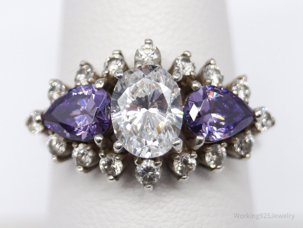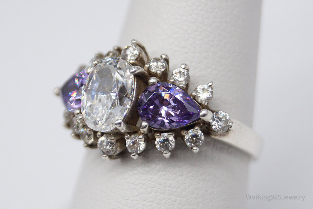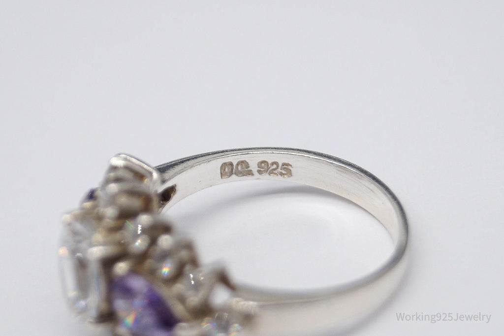 Vintage Purple & White Diamonique Cubic Zirconia Sterling Silver Ring - Size 8