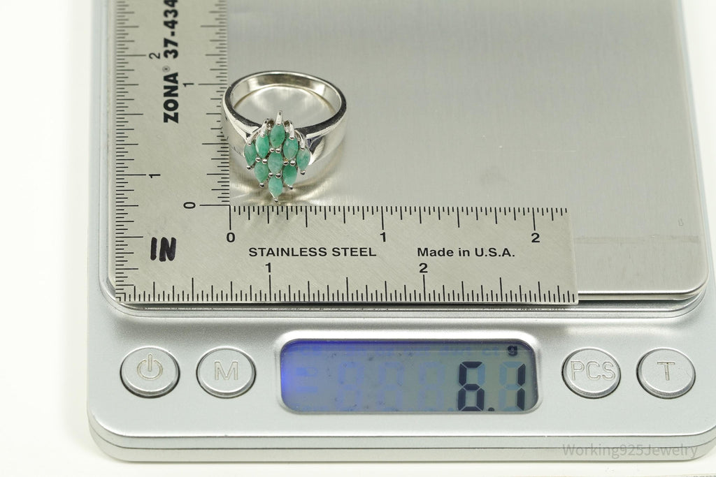 Vintage QJ Green Emerald Sterling Silver Ring - Size 8
