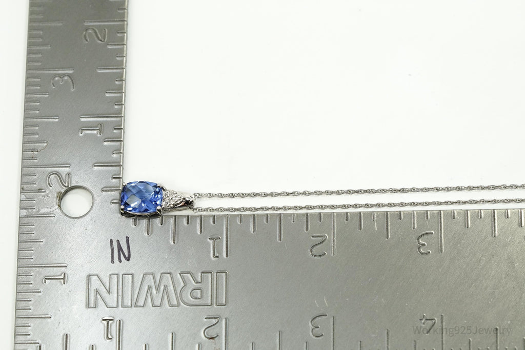 Vintage Ross Simons Lab Created Blue Sapphire & Single Diamond Sterling Silver Necklace 18"