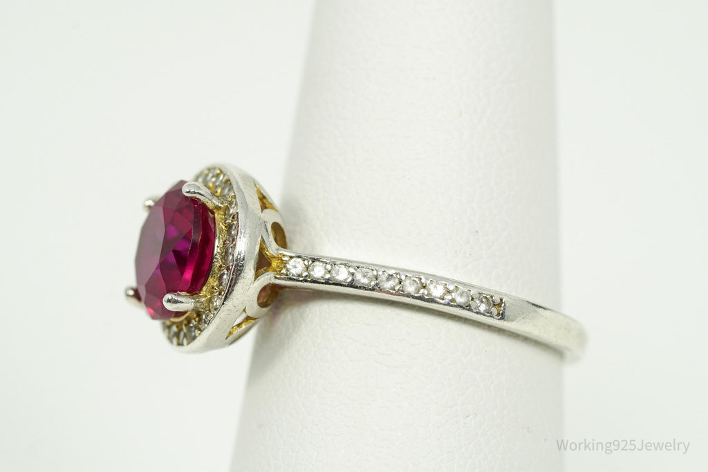 Vintage Ruby & Cubic Zirconia Sterling Silver Ring - Size 7