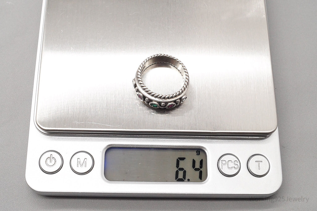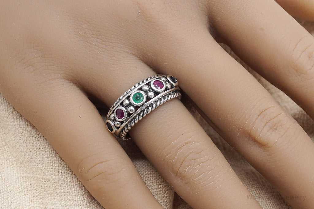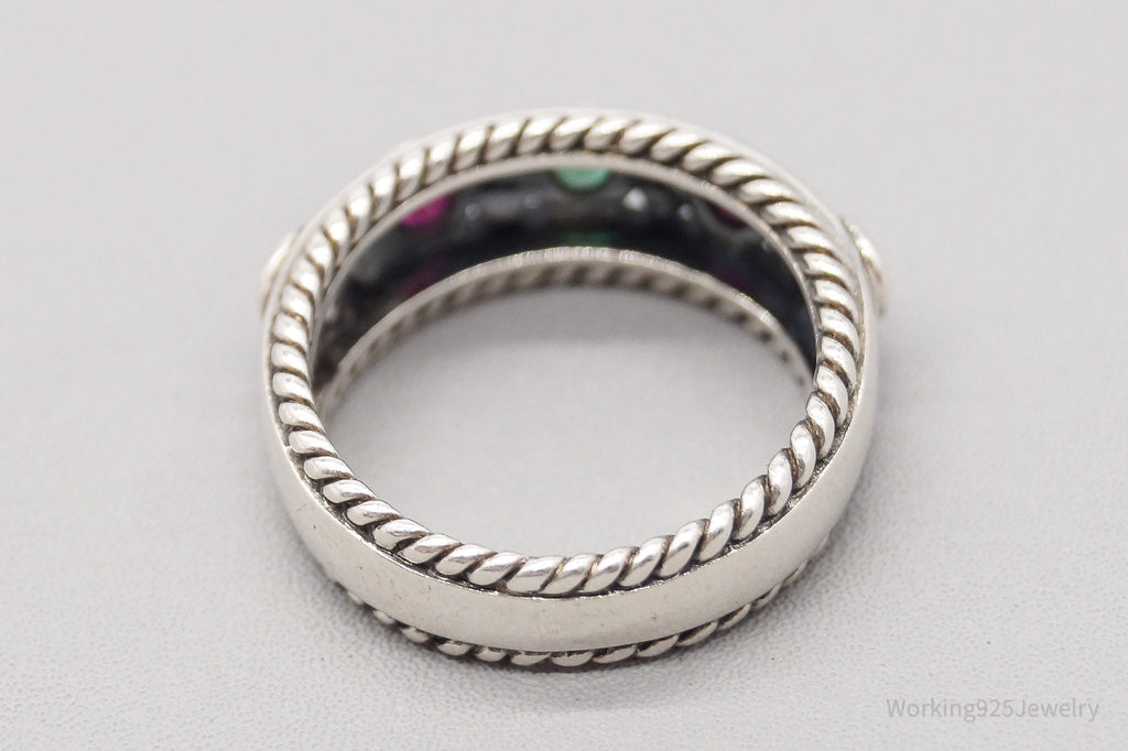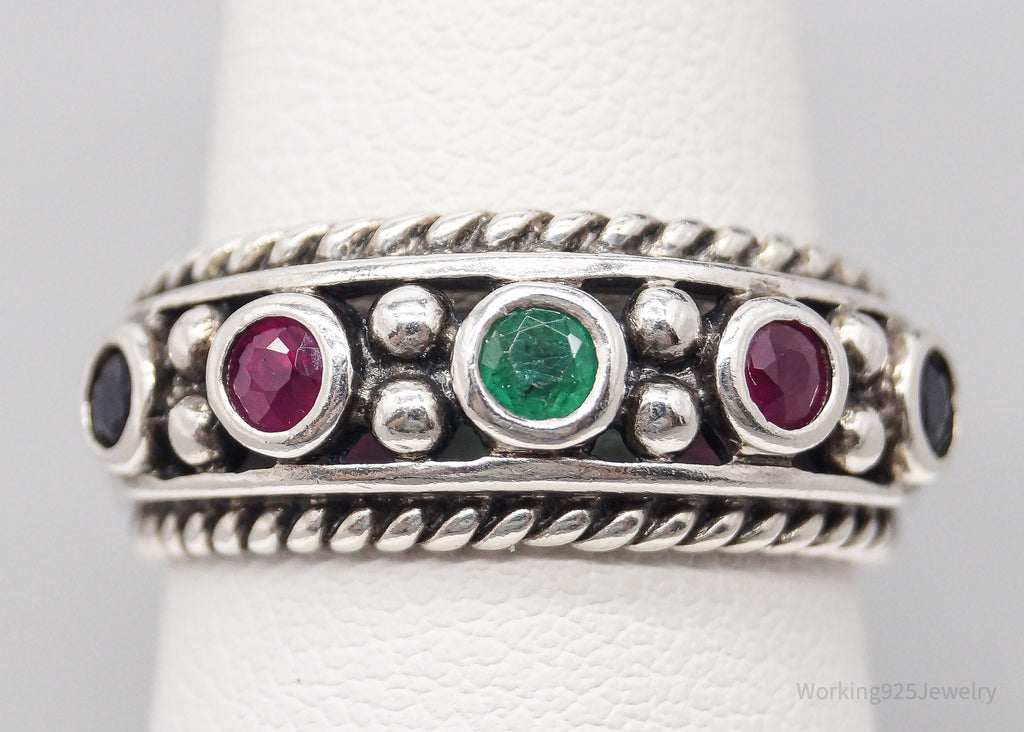 Vintage Ruby Emerald Sapphire Sterling Silver Ring - Size 7.75