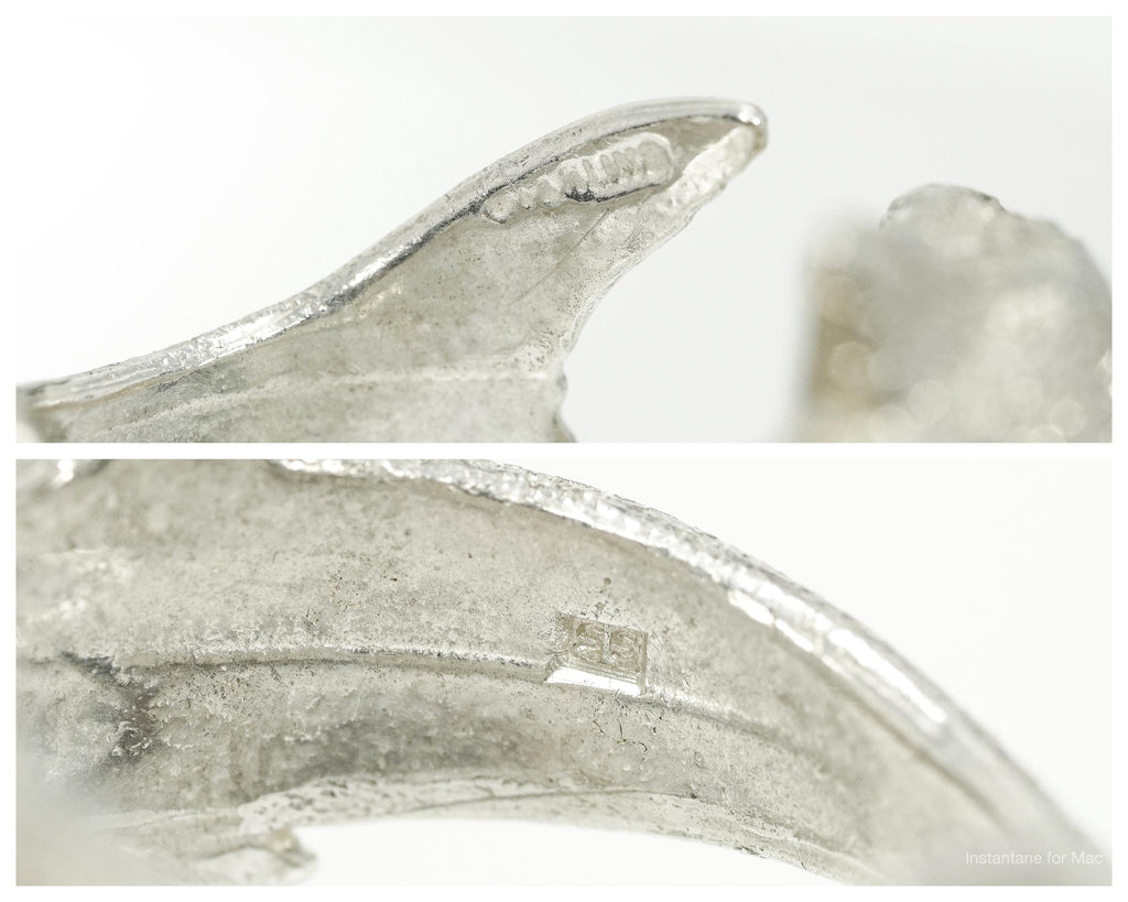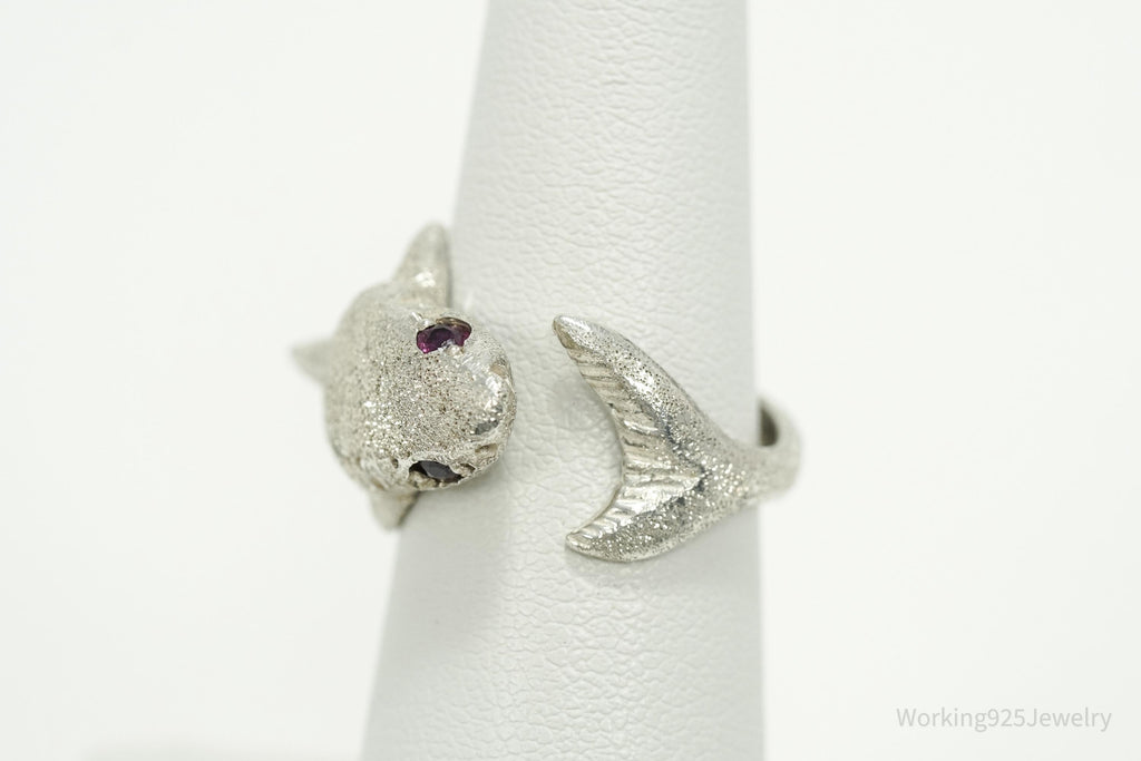 Vintage Ruby Eyed Shark Sterling Silver Wrap Ring - Size 6.25