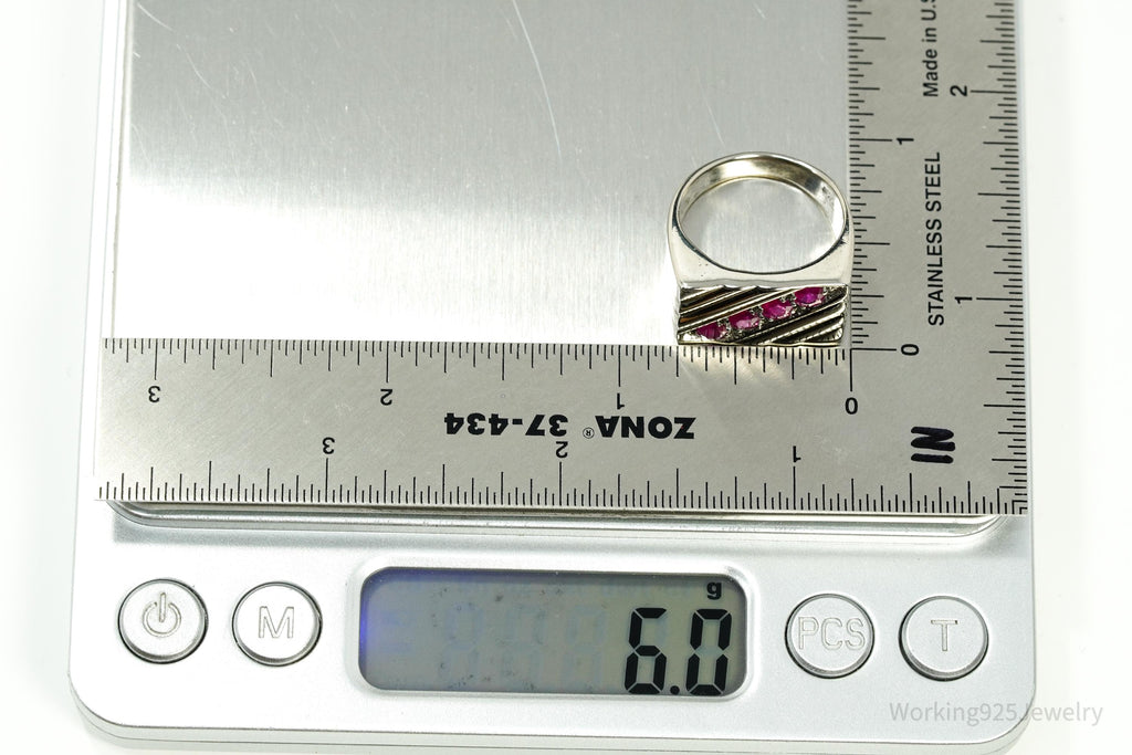 Vintage Ruby Sterling Silver Ring - Size 7.25