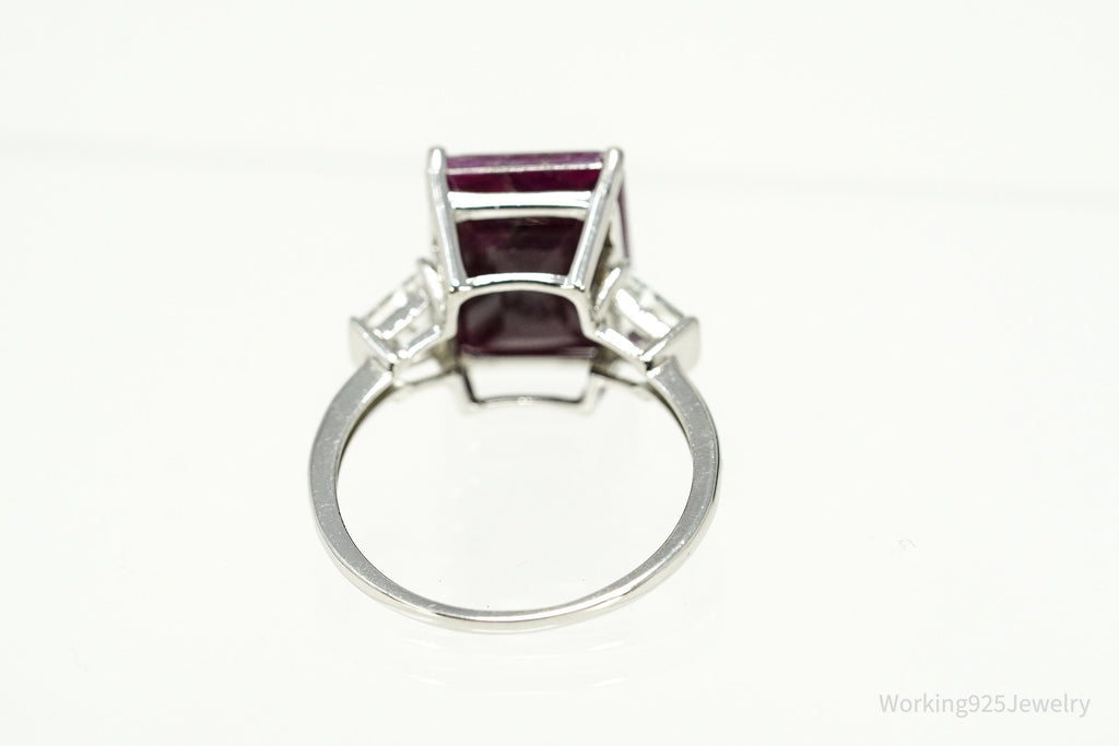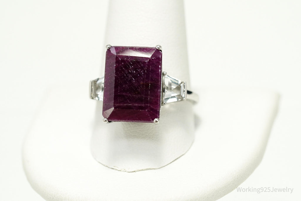 Vintage Ruby & White Topaz \ Sterling Silver Ring - Size 11