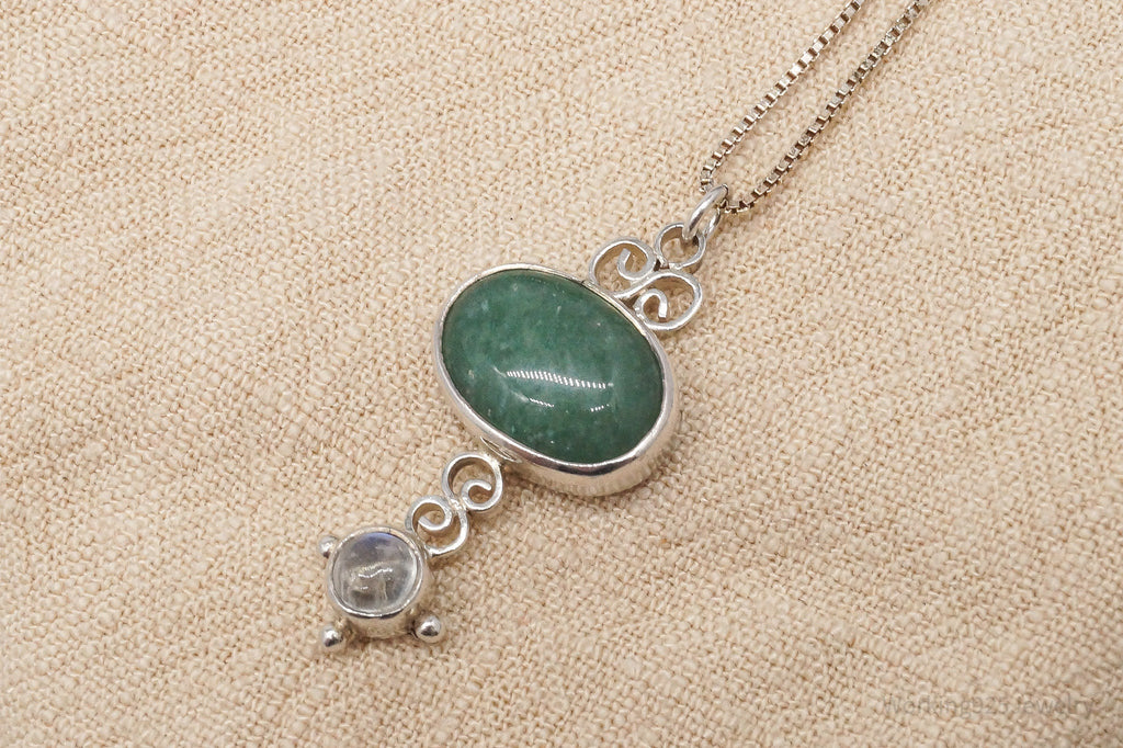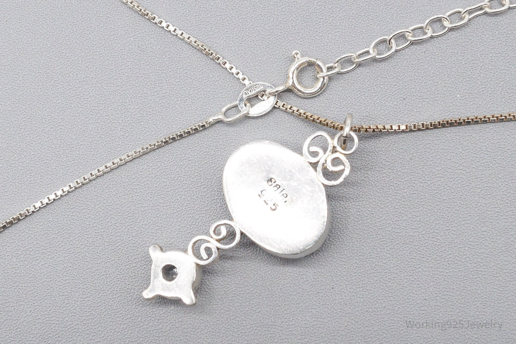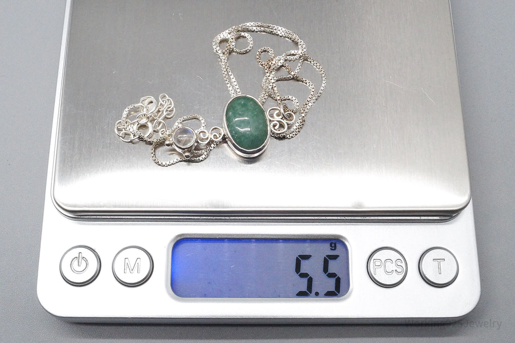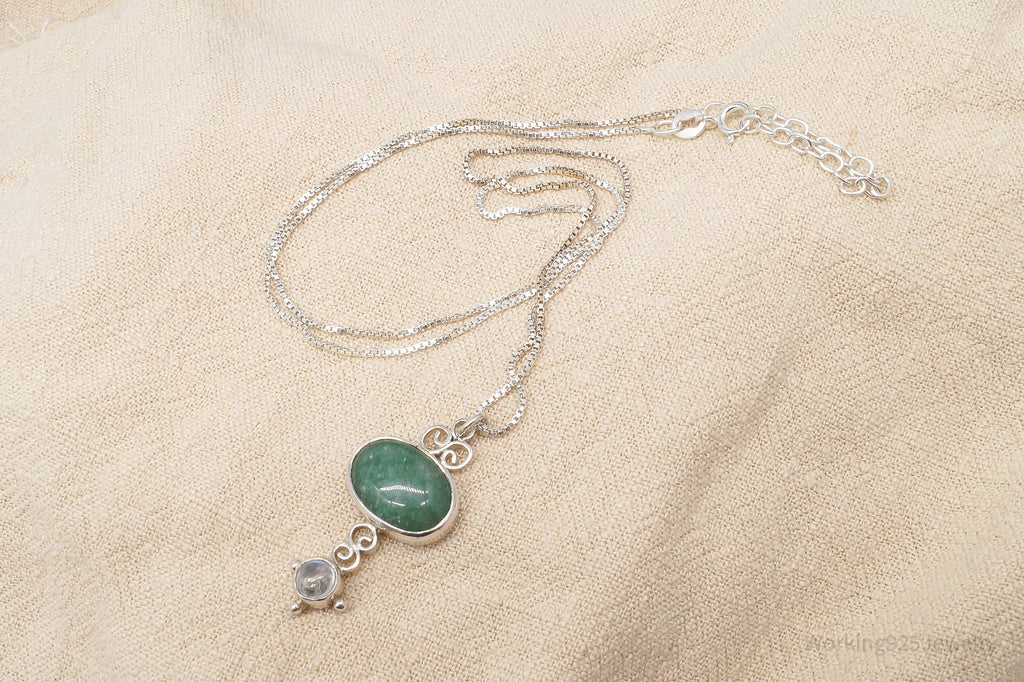 Vintage SAJEN Aventurine & Moonstone Sterling Silver Necklace 20"