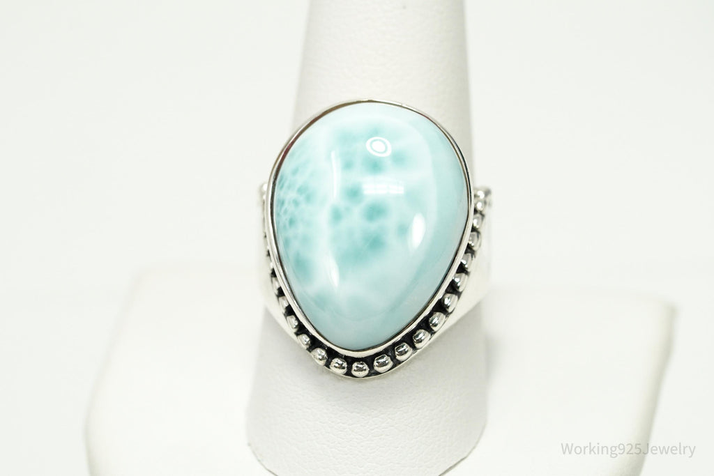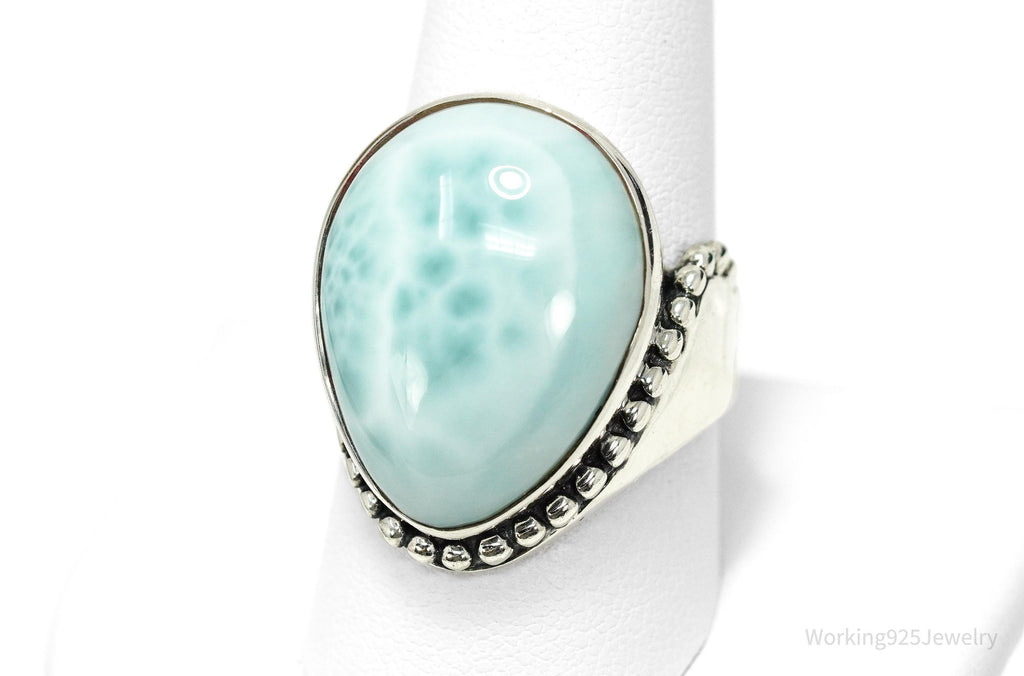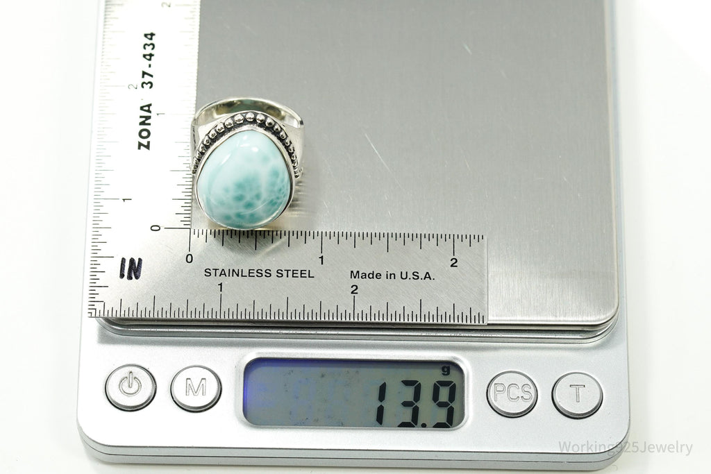 Vintage SAJEN Large Blue Larimar Sterling Silver Ring - Size 10