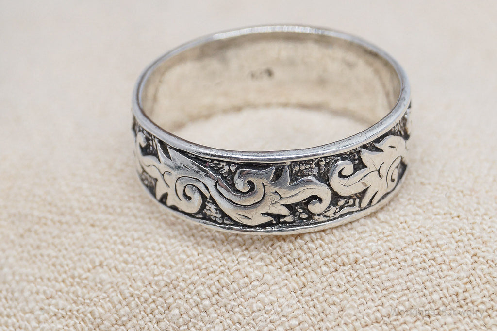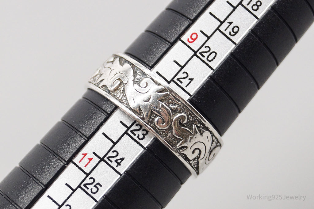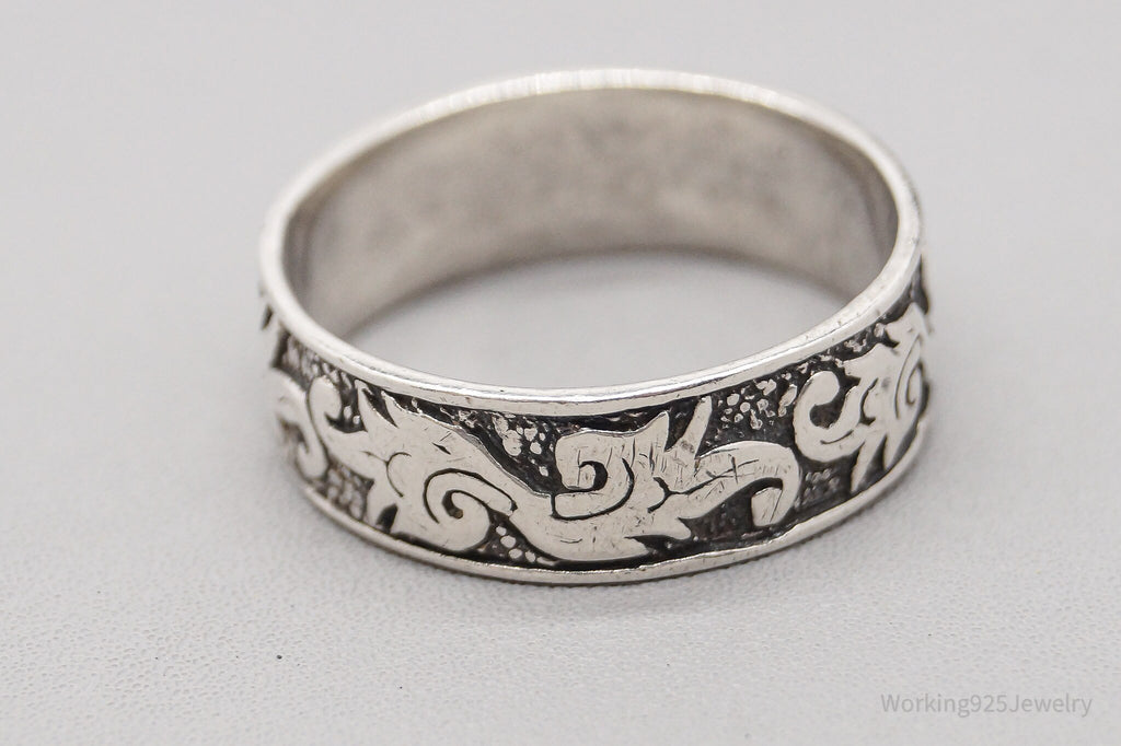 Vintage Scroll Style Sterling Silver Band Ring - Size 10
