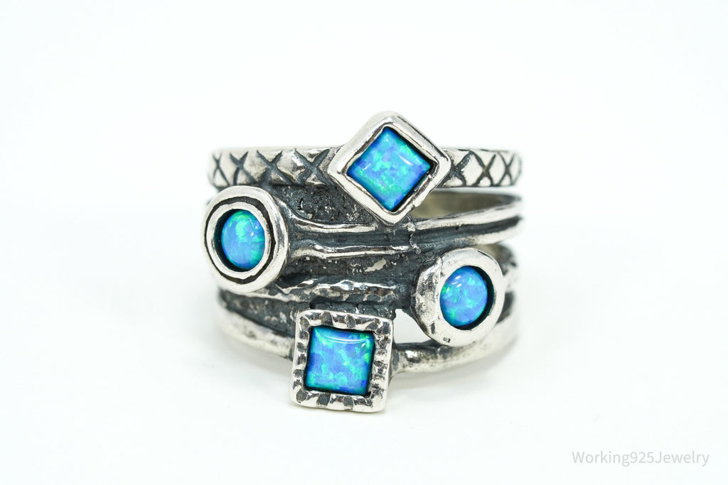 Vintage Shablool Didae Israel Blue Opal Sterling Silver Ring - Size 7.25