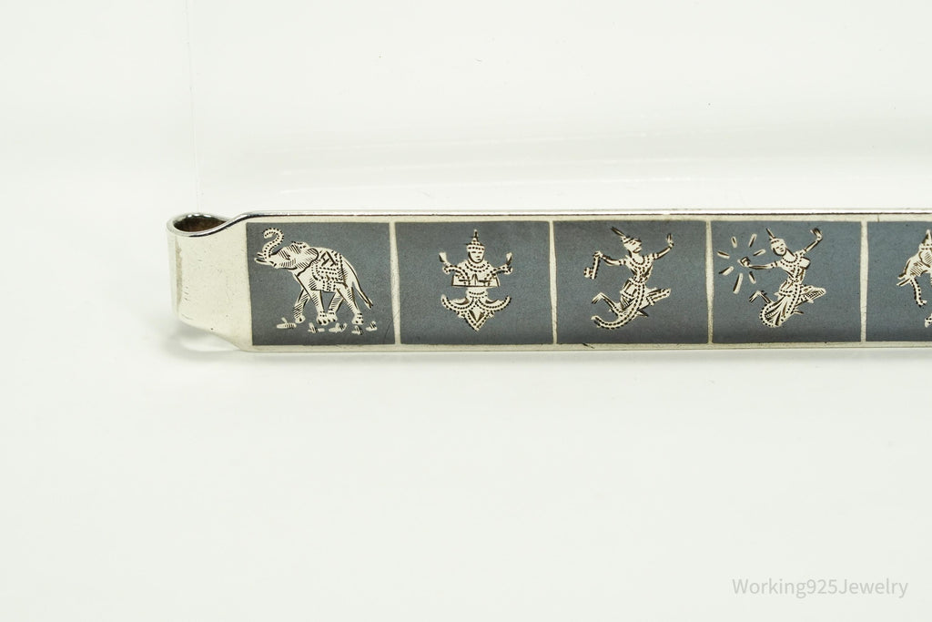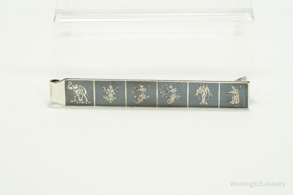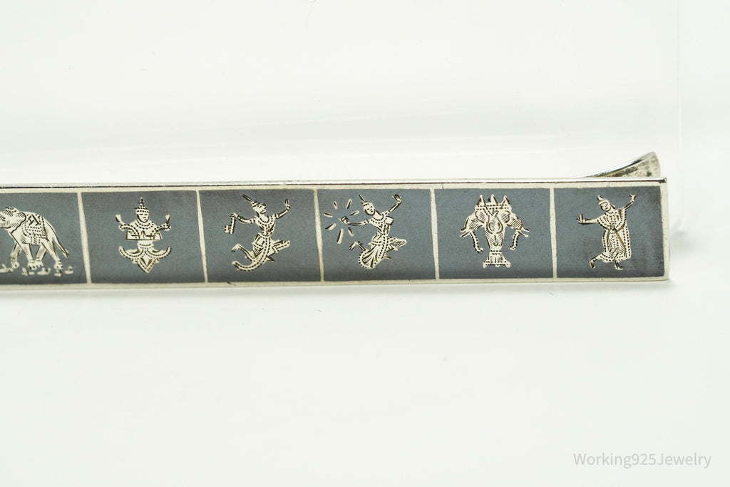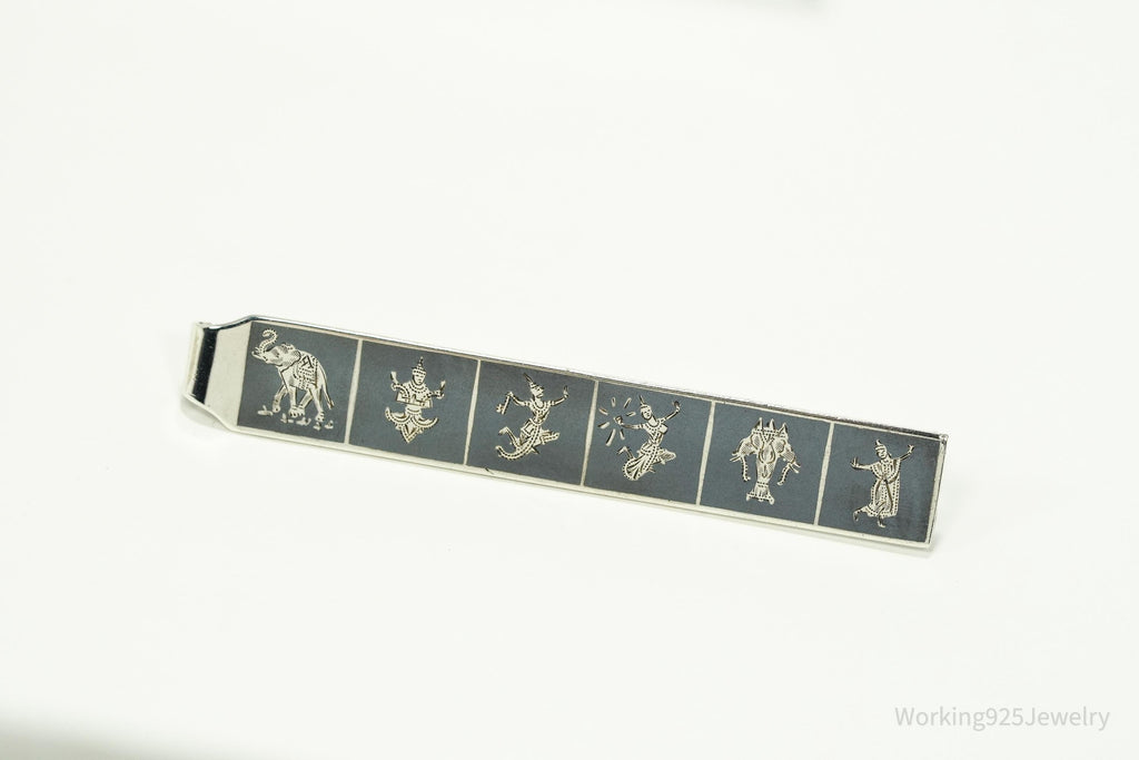Vintage SIAM Black Enamel Sterling Silver Money Clip Tie Clip Hair Pin