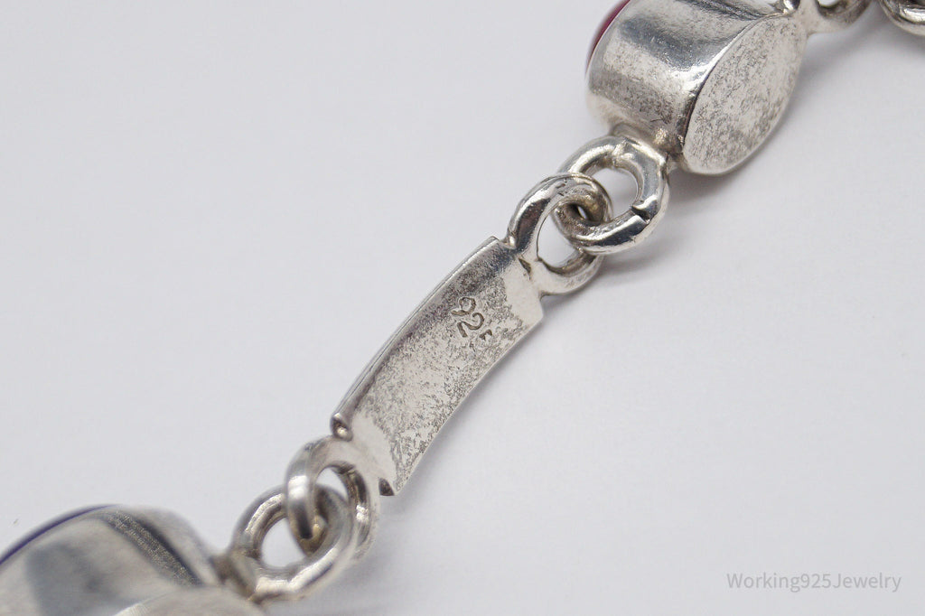 Vintage Smoky Topaz Amethyst & Pink Stone Sterling Silver Toggle Bracelet 7 5/8"