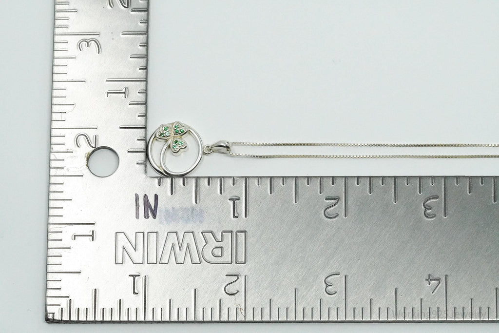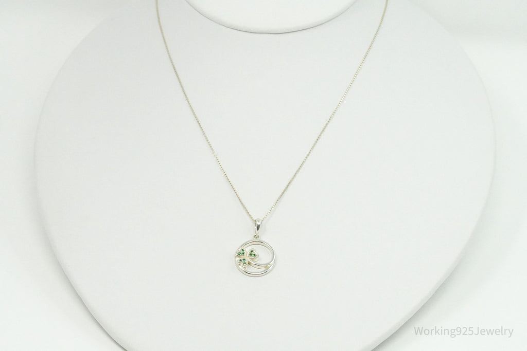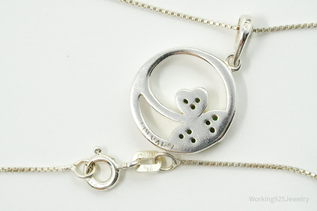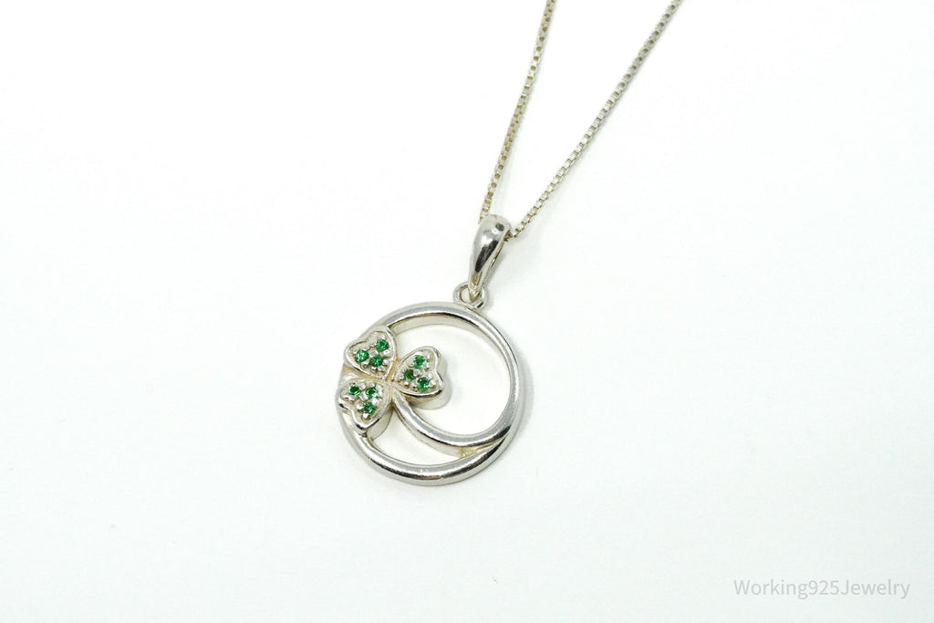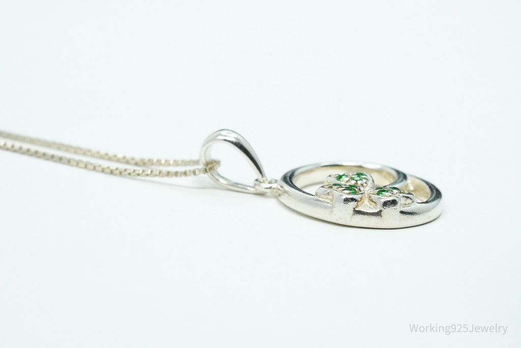 Vintage SOLVAR Three Leaf Clover Green Stone Sterling Silver Necklace - 16"