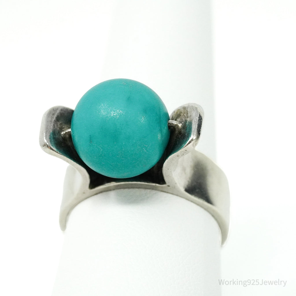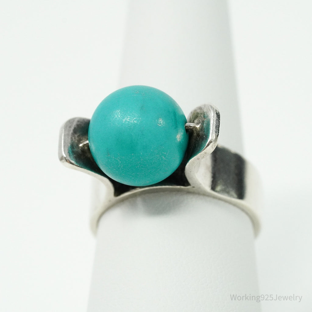 Vintage Spinning Turquoise Ball Modernist Sterling Silver Ring - Size 8