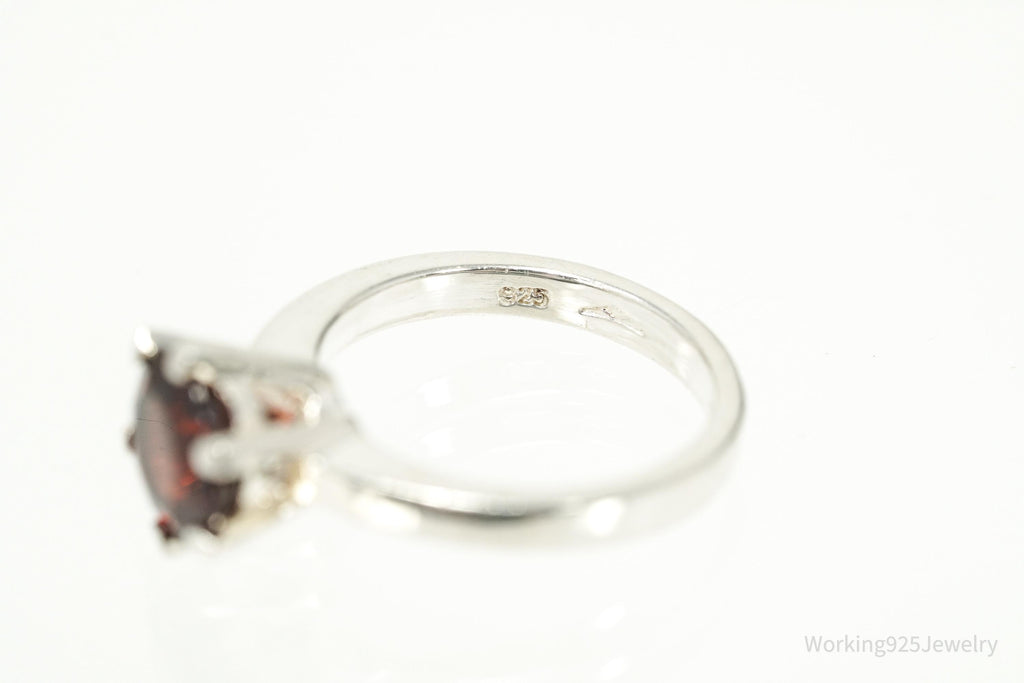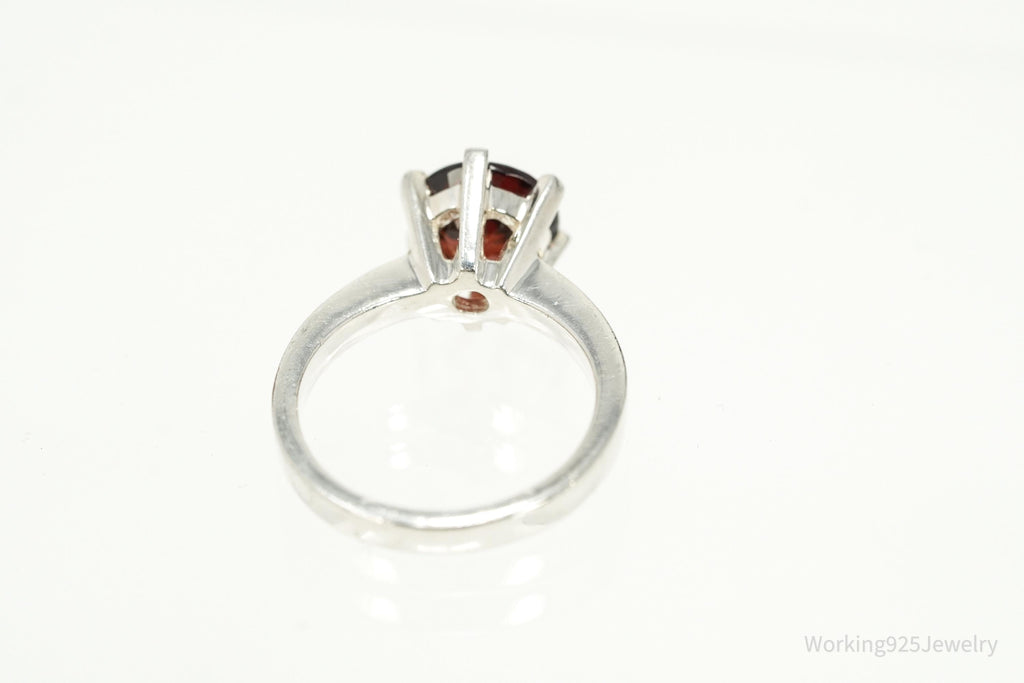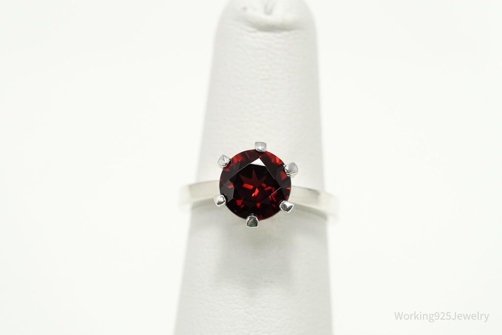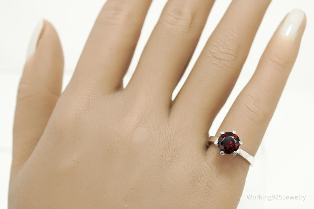 Vintage Sterling Silver Ring • Round Garnet Solitaire Gemstone Size 5
