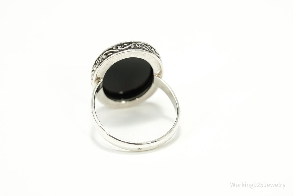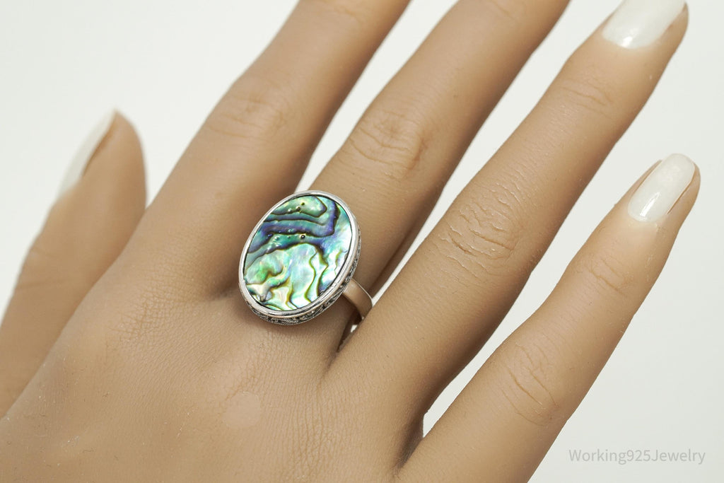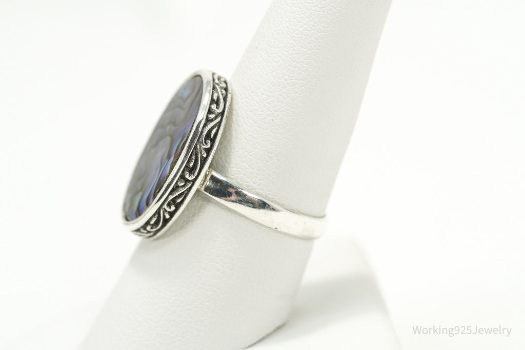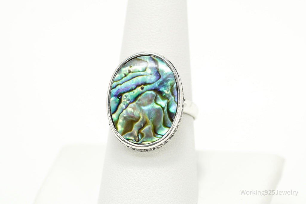 Vintage Large Paua Abalone Shell Inlay Sterling Silver Ring - Size 9