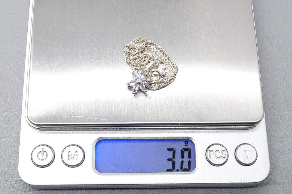 Vintage Tanzanite Flower Sterling Silver Necklace 18"