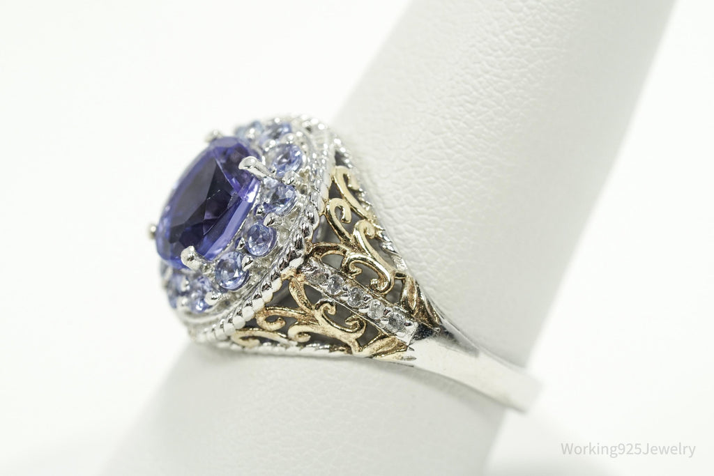 Vintage Tanzanite & White Topaz Gold Vermeil Sterling Silver Ring Size 9