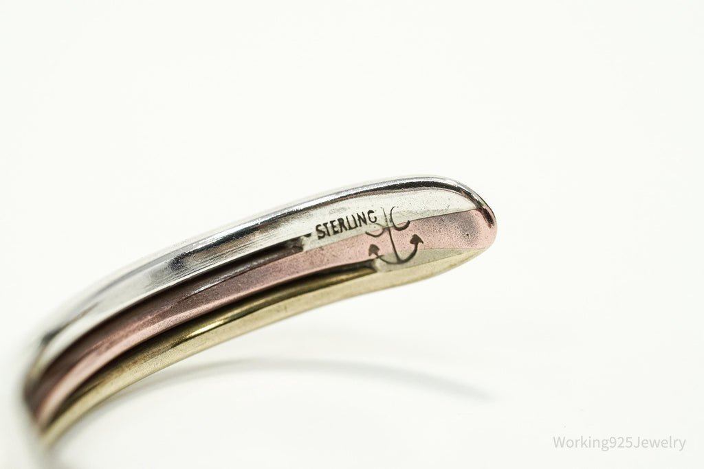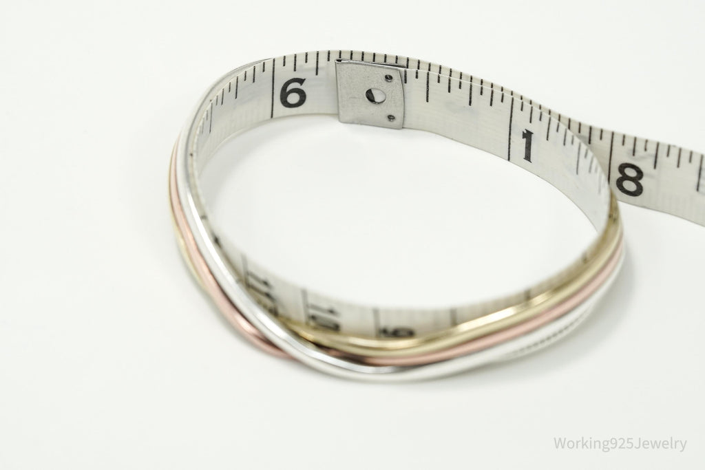 Vintage Three Metal Twist Sterling Silver Copper Brass Cuff Bracelet 6 3/8"