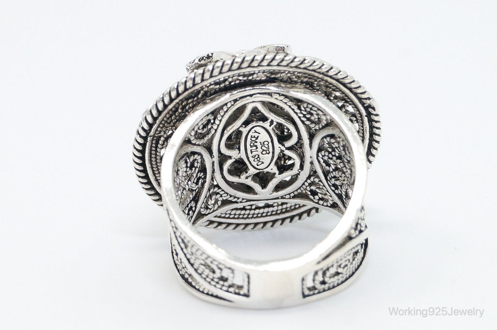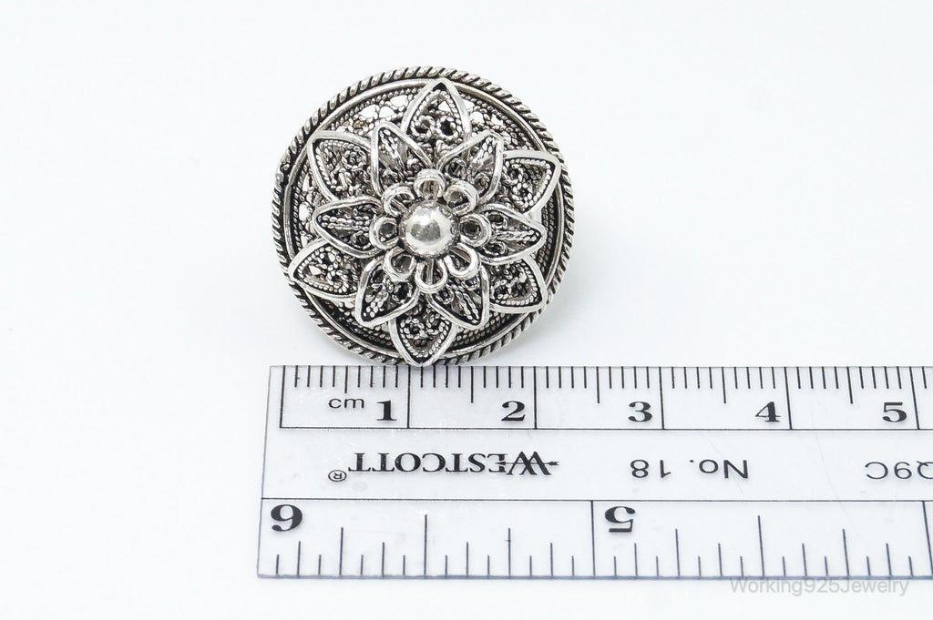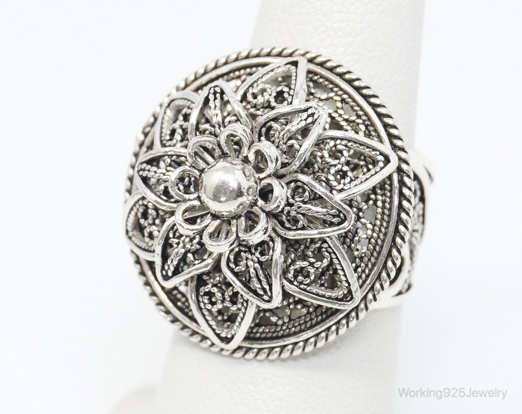 Vintage Turkey Designer DGS Flower Filigree Sterling Silver Ring - Size 6