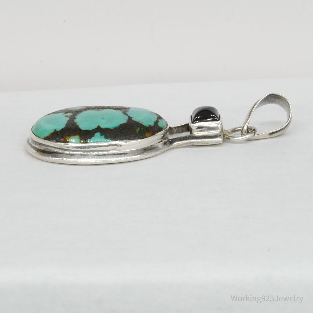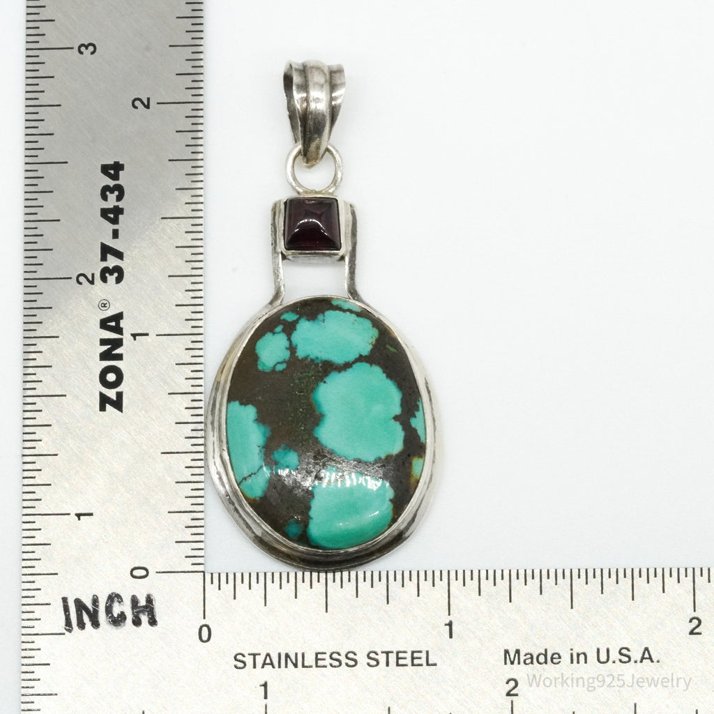 Vintage Turquoise & Rhodolite Garnet Sterling Silver Pendant