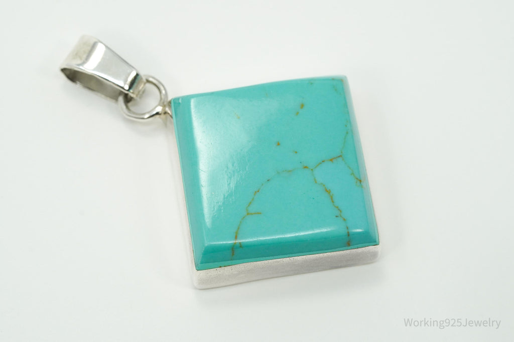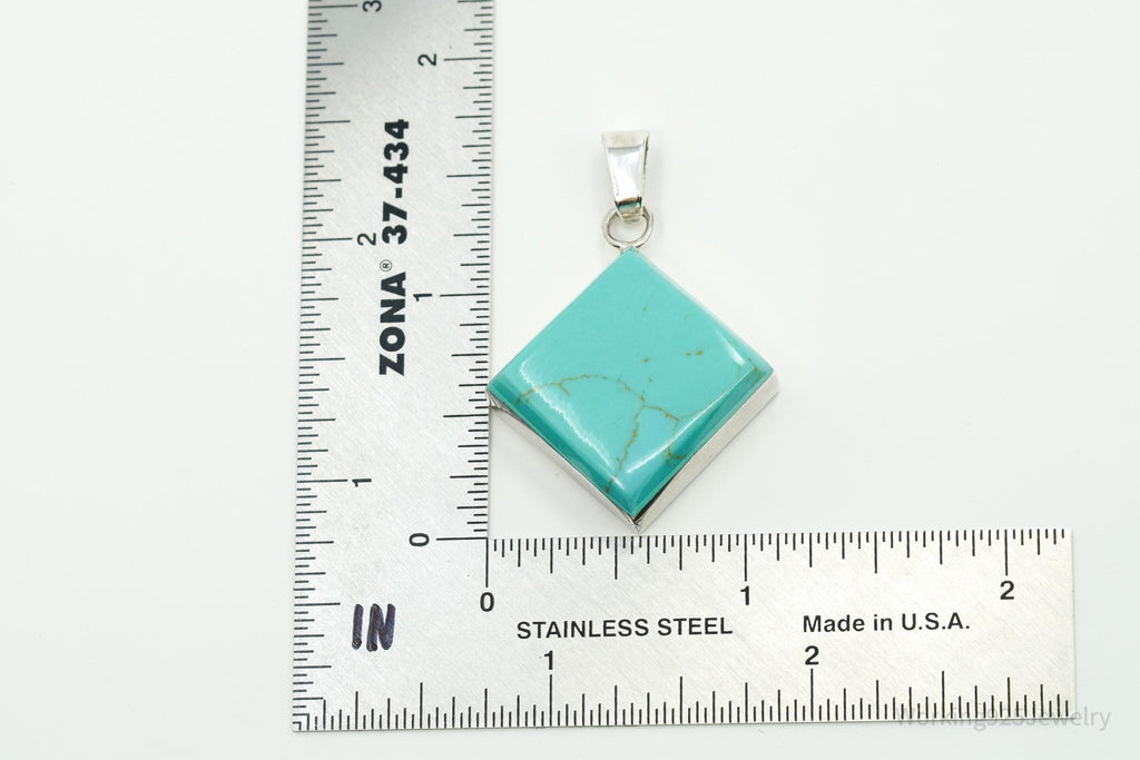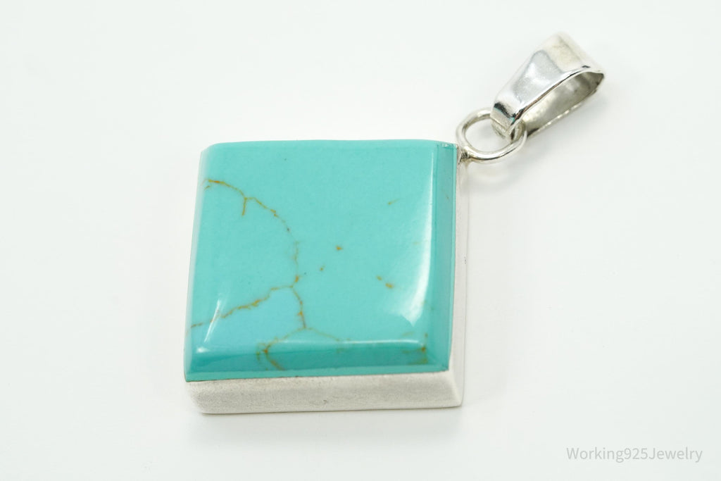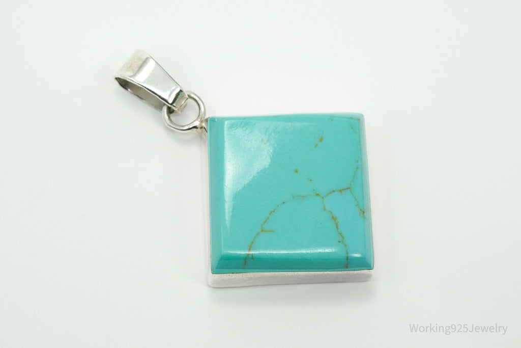 Vintage Turquoise Square Sterling Silver Necklace Pendant