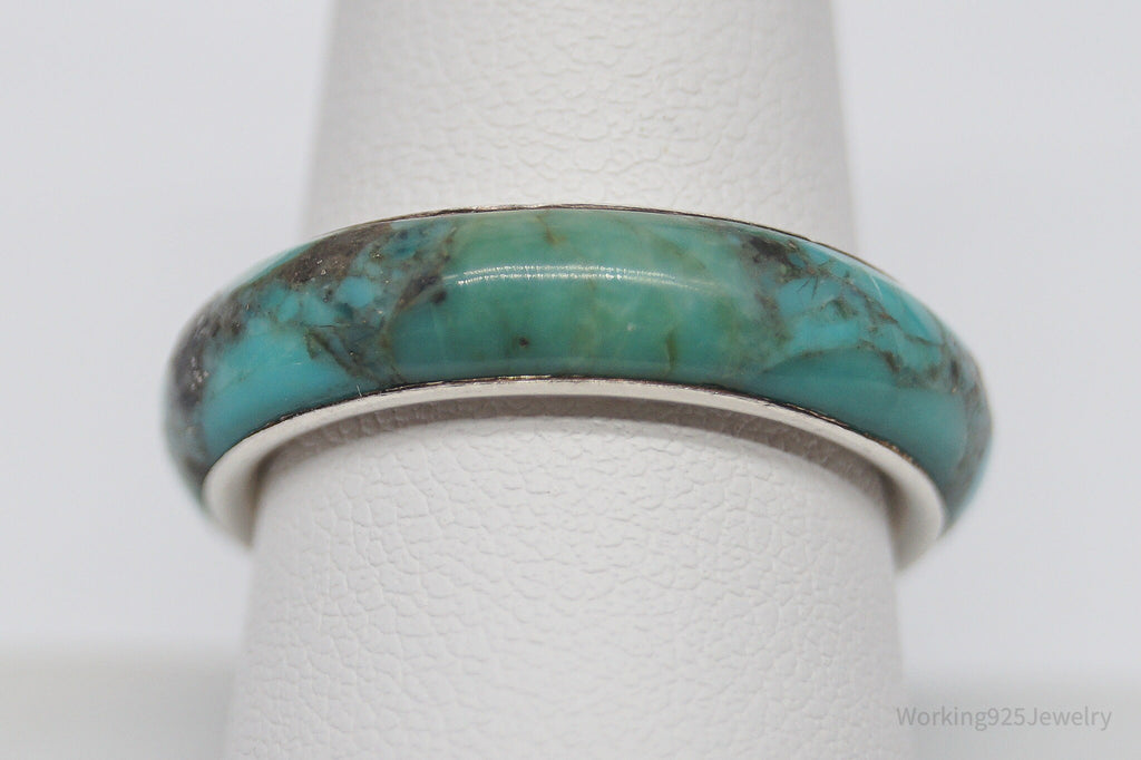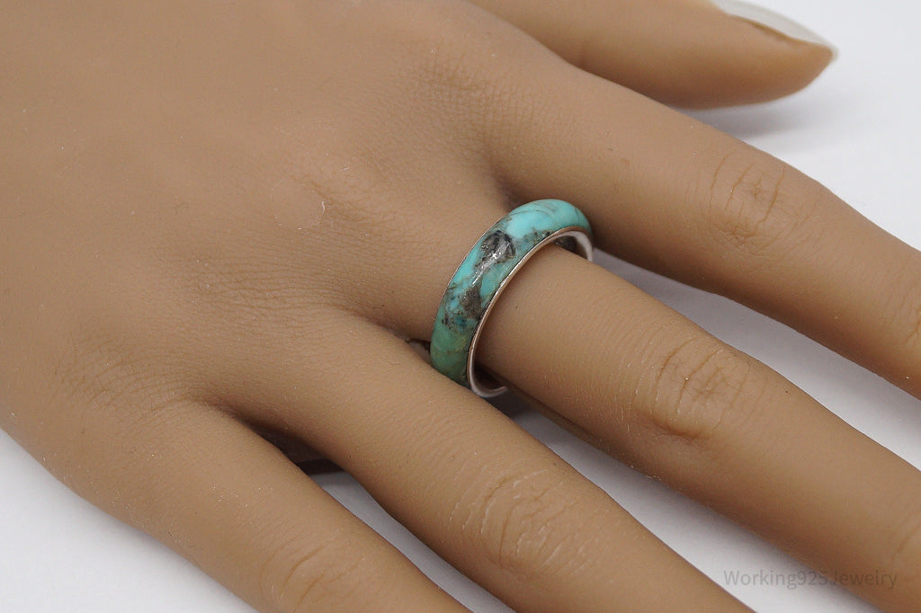Vintage Turquoise Sterling Silver Band Ring - Size 9