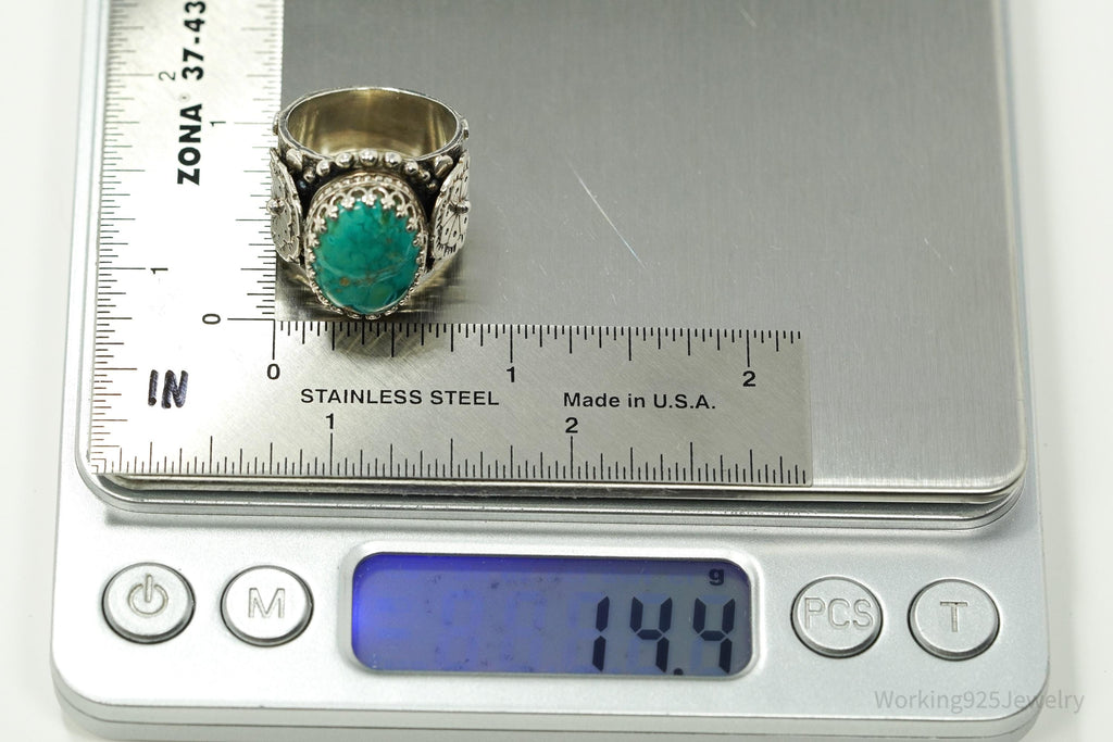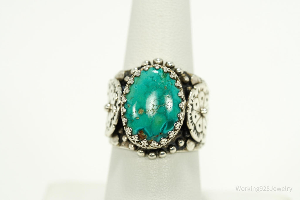 Vintage Turquoise Sterling Silver Detailed Ring - Size 7.25