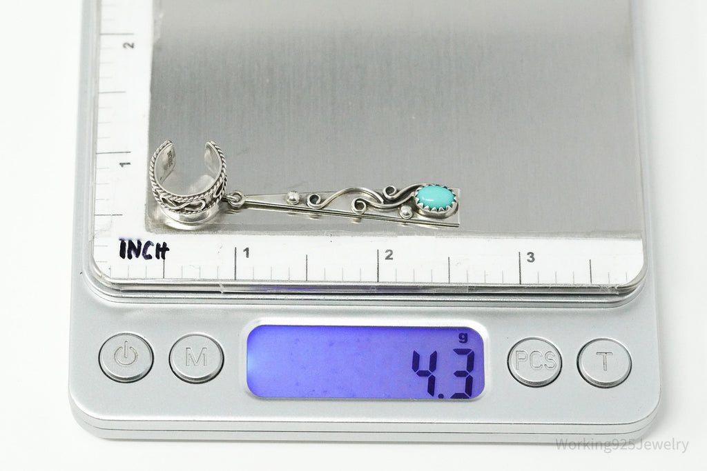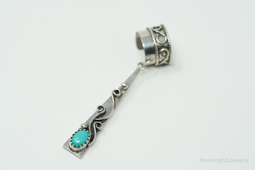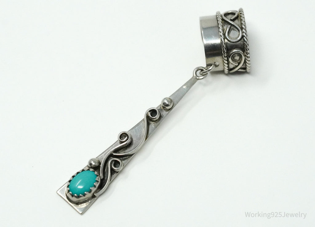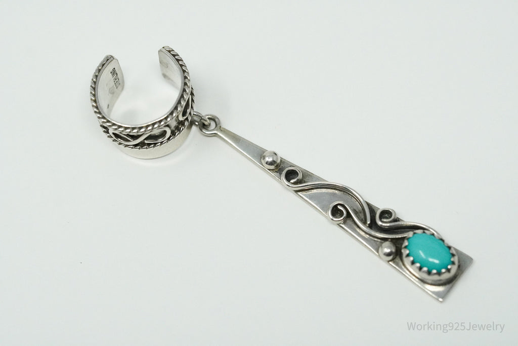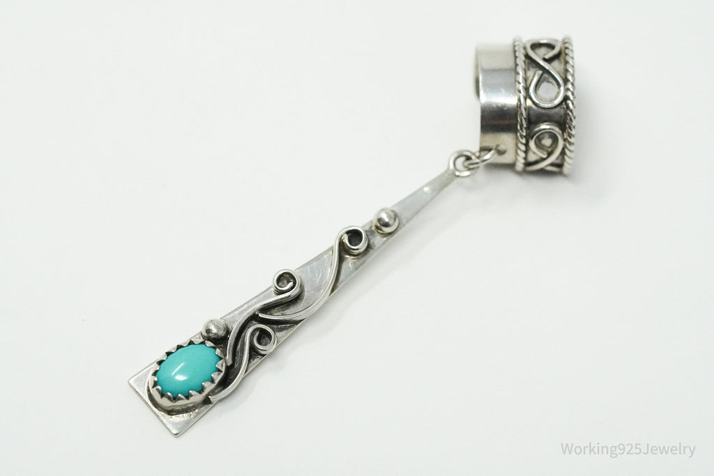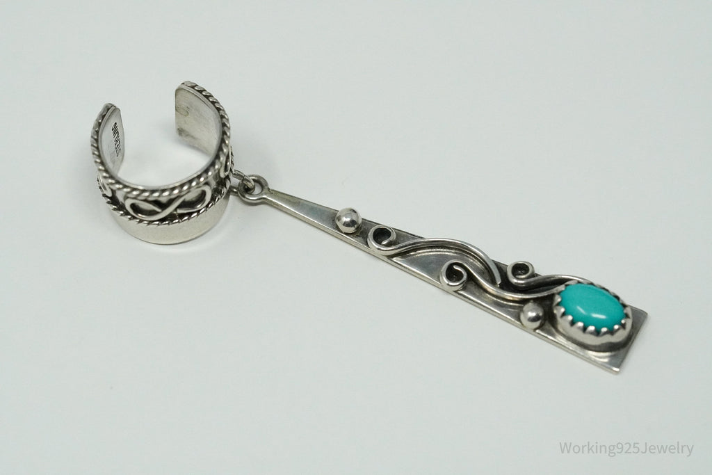 Vintage Turquoise Western Style Sterling Silver Ear Cuff