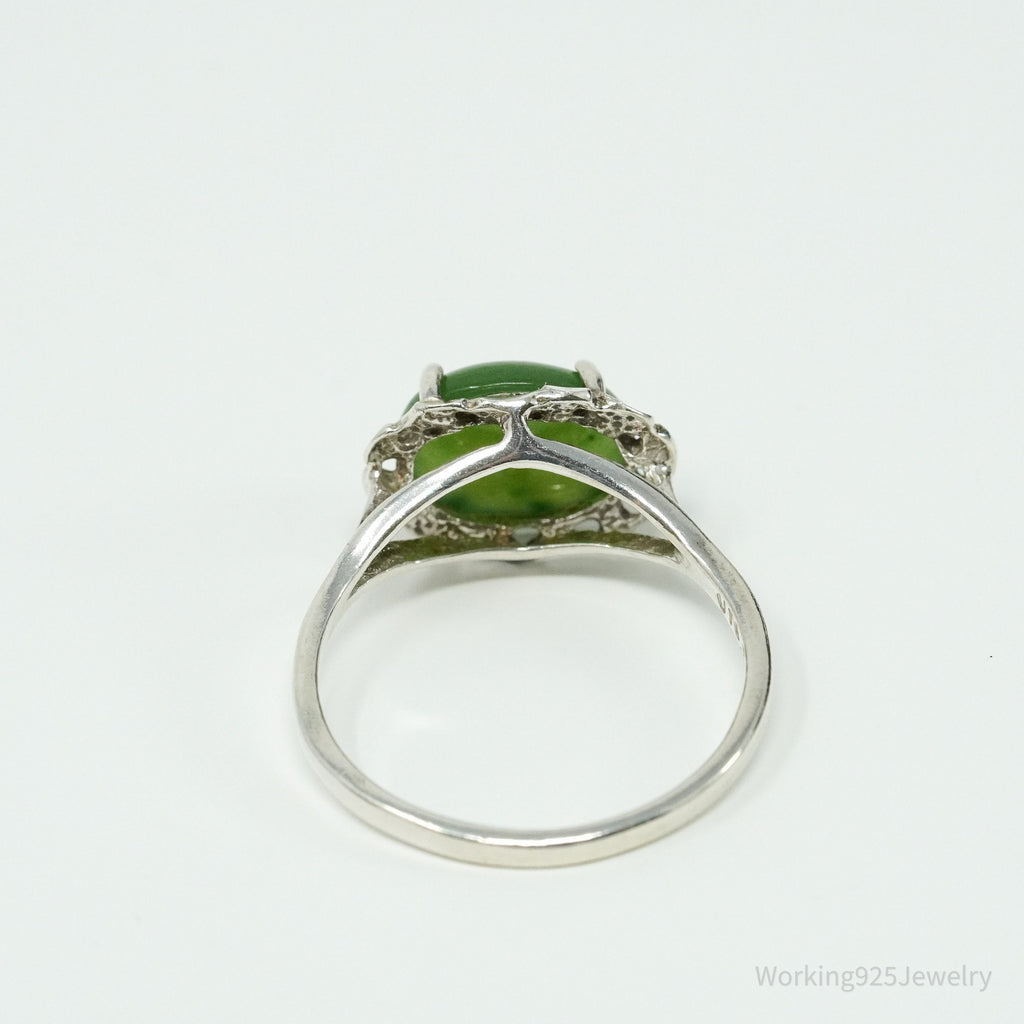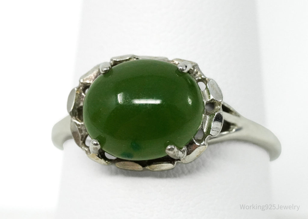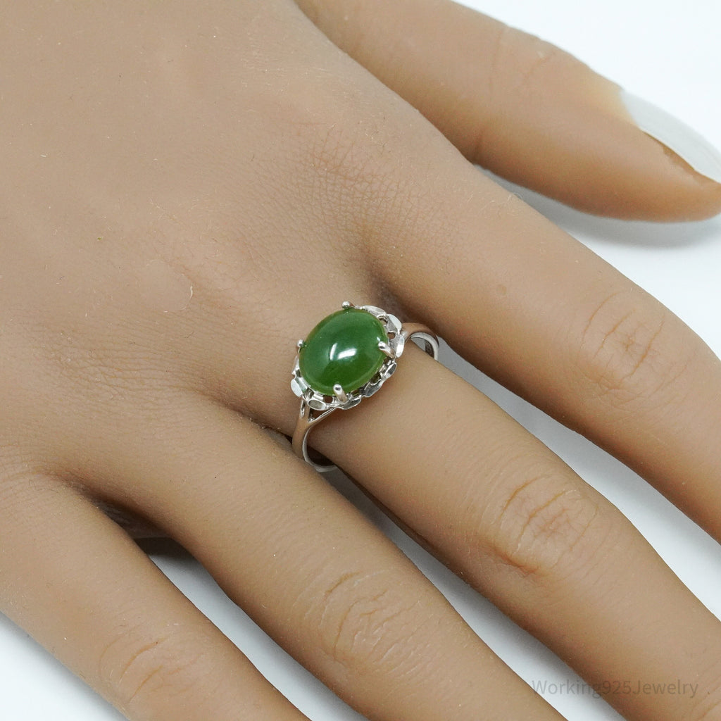 Vintage UTC Nephrite Jade Sterling Silver Ring - Size 9
