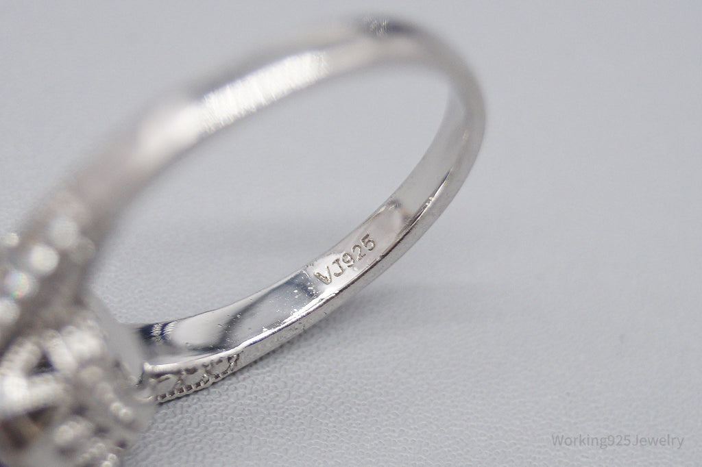 Vintage Violet Stone & White Cubic Zirconia Sterling Silver Ring - Size 7