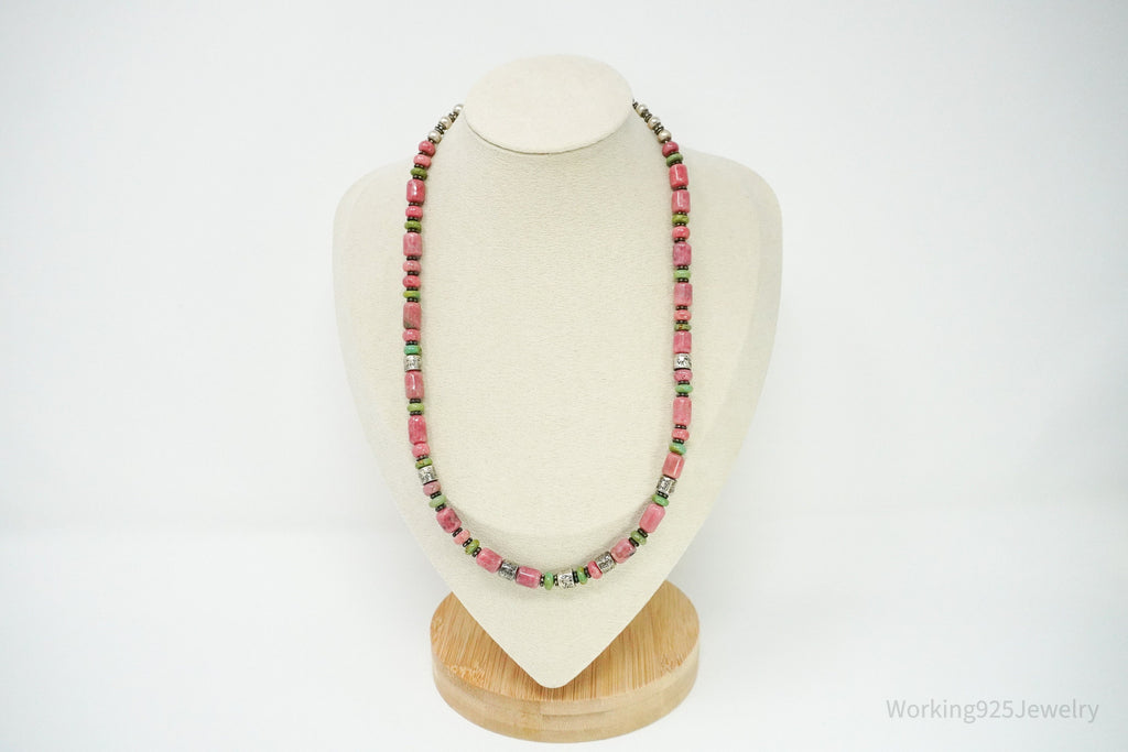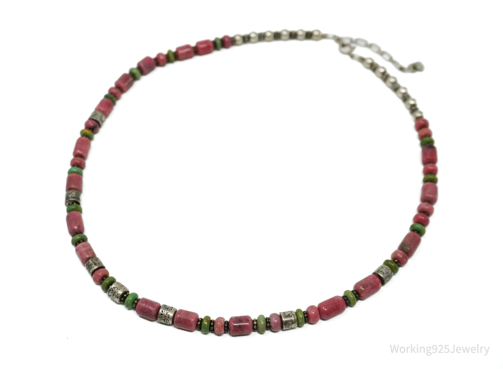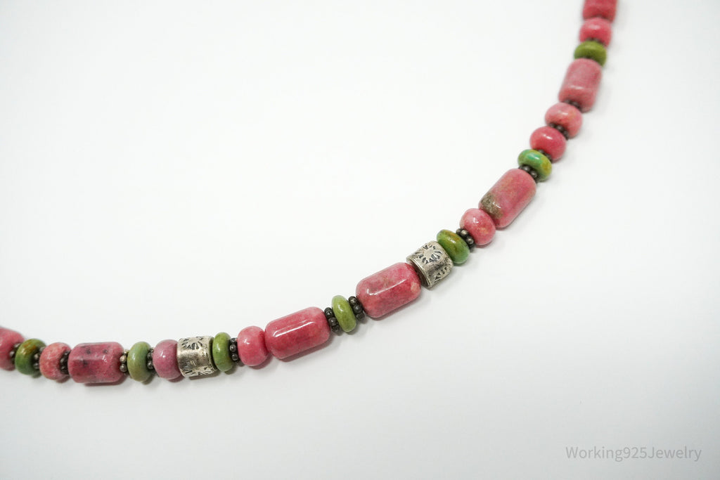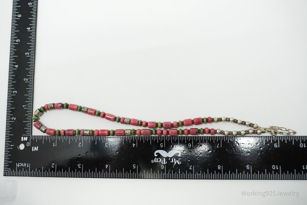 Vintage Western Rhodonite & Turquoise Bead Sterling Silver Necklace 19"